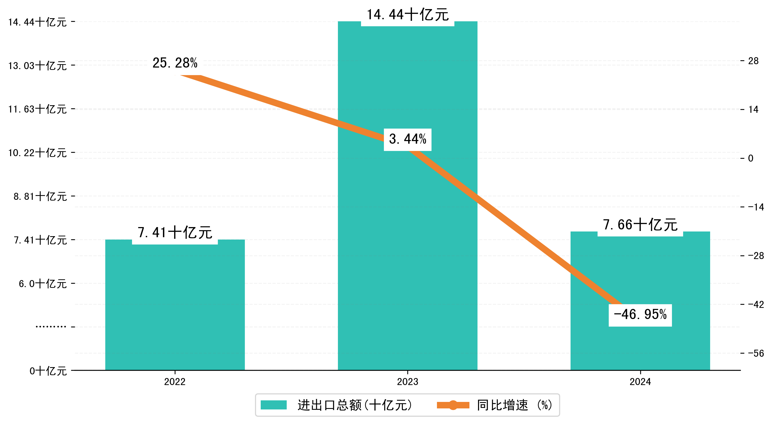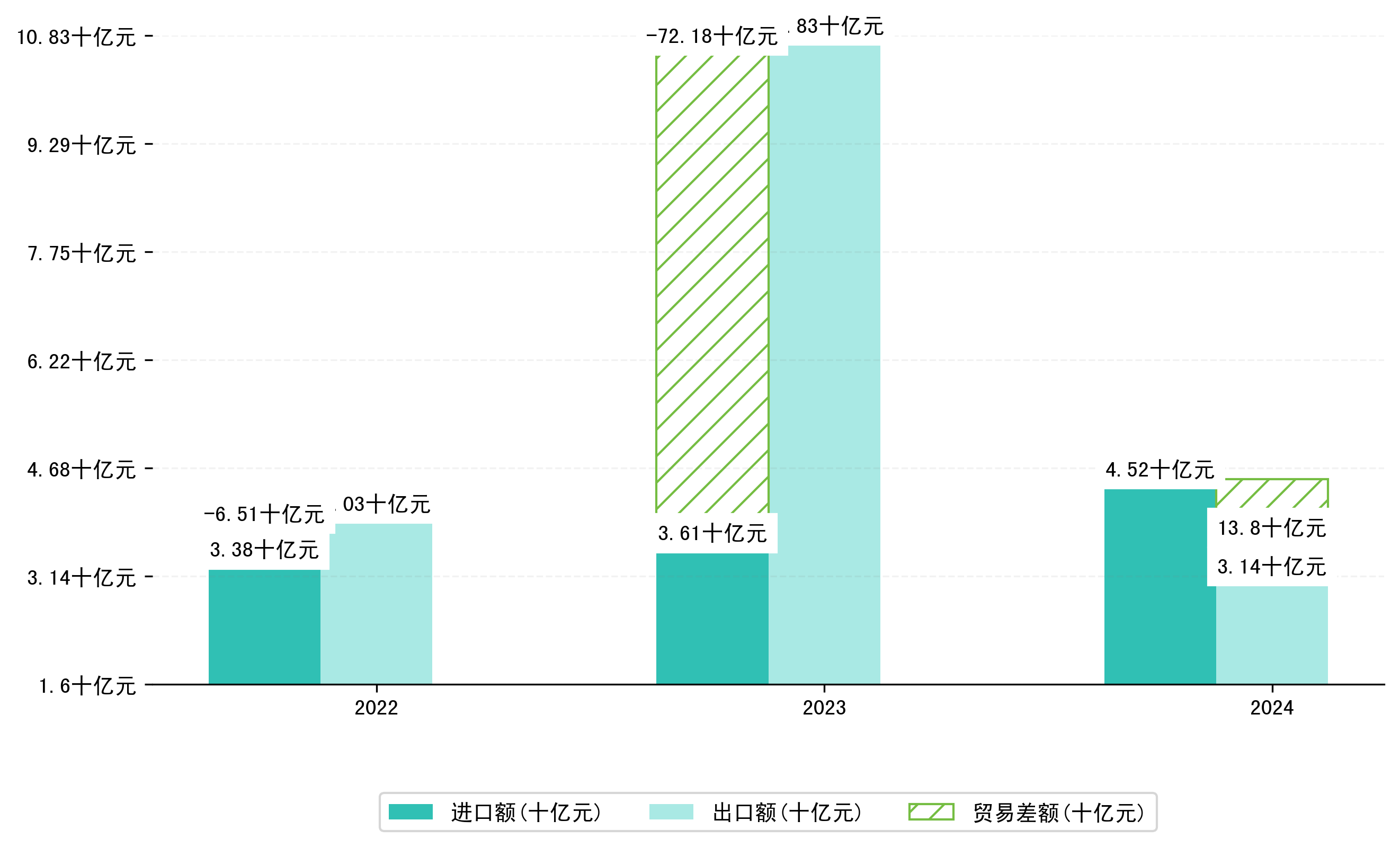 以美元计,2024年1-3月衡阳市贸易差额为1,9411,2885万美元(贸易逆差),相比上年同期减少了12,4438,3533万美元,同比减少-118.48%。