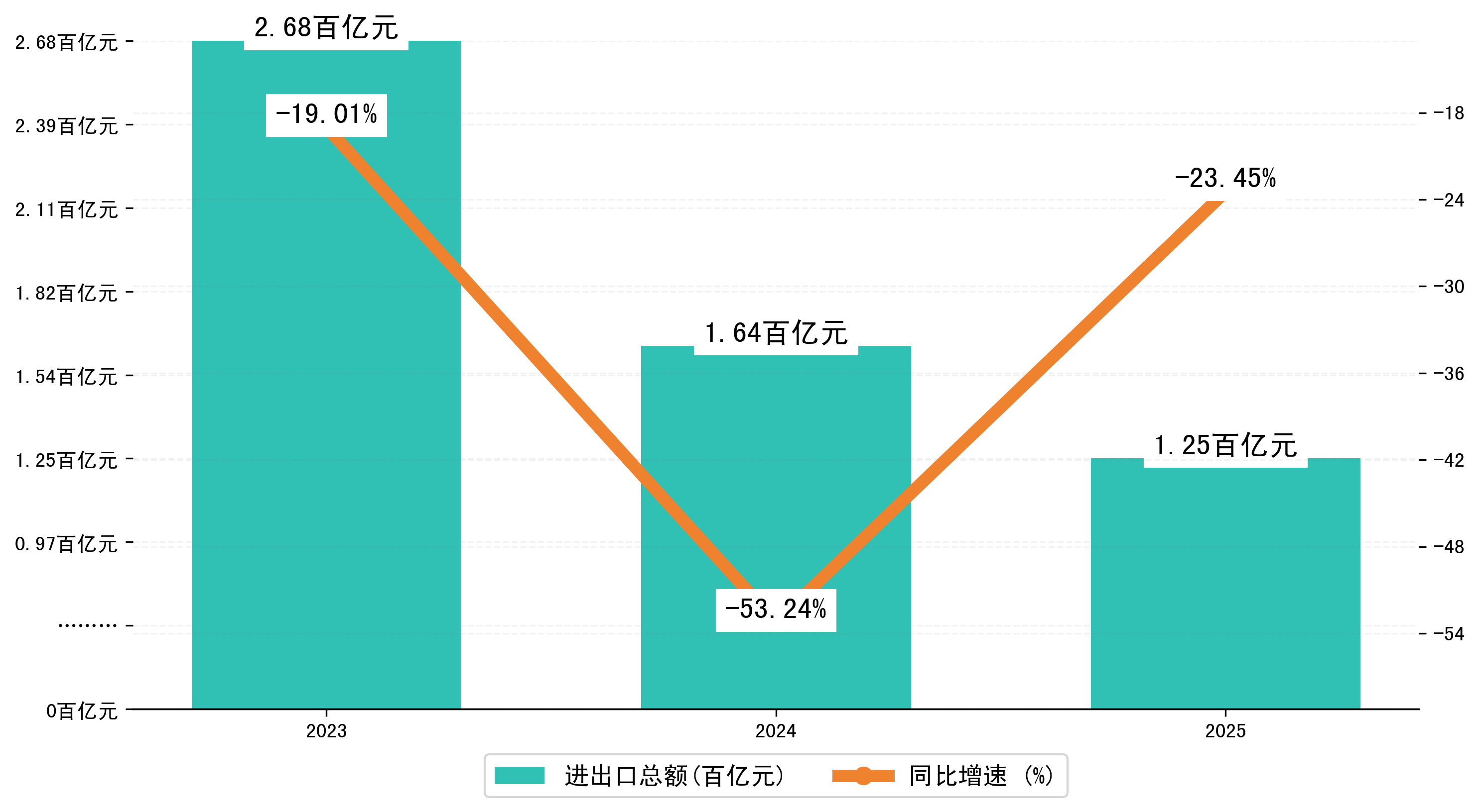 以美元计,2025年6月衡阳市进出口总额为2,5639.6819万美元,相比上月增加了194.5615万美元;相比上年同期减少了1,2869.7541万美元,同比减少-25.60%。