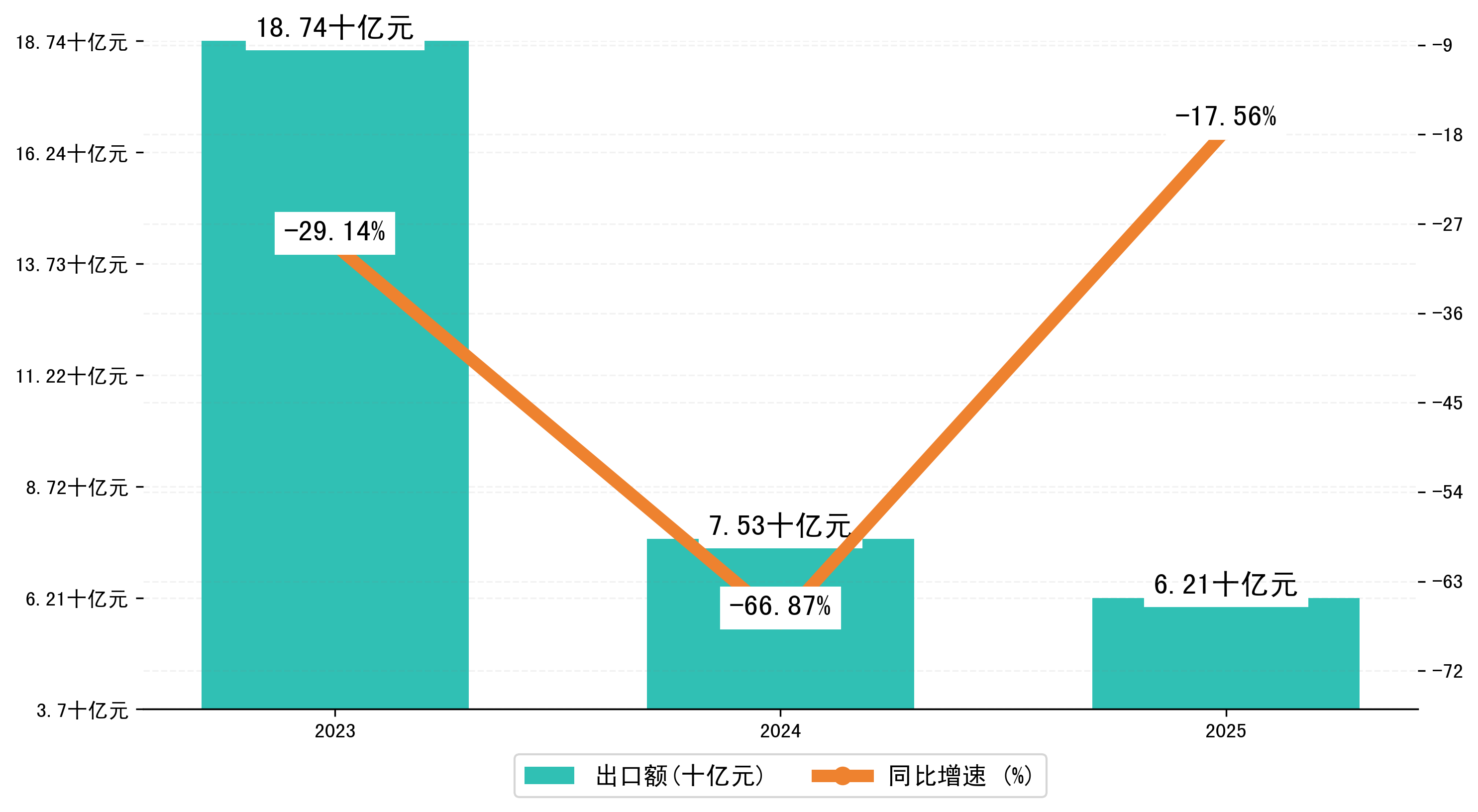 以美元计,2025年1-6月衡阳市出口额为8,6408.0166万美元,相比上年同期减少了1,9616.7012万美元,同比减少-18.50%。