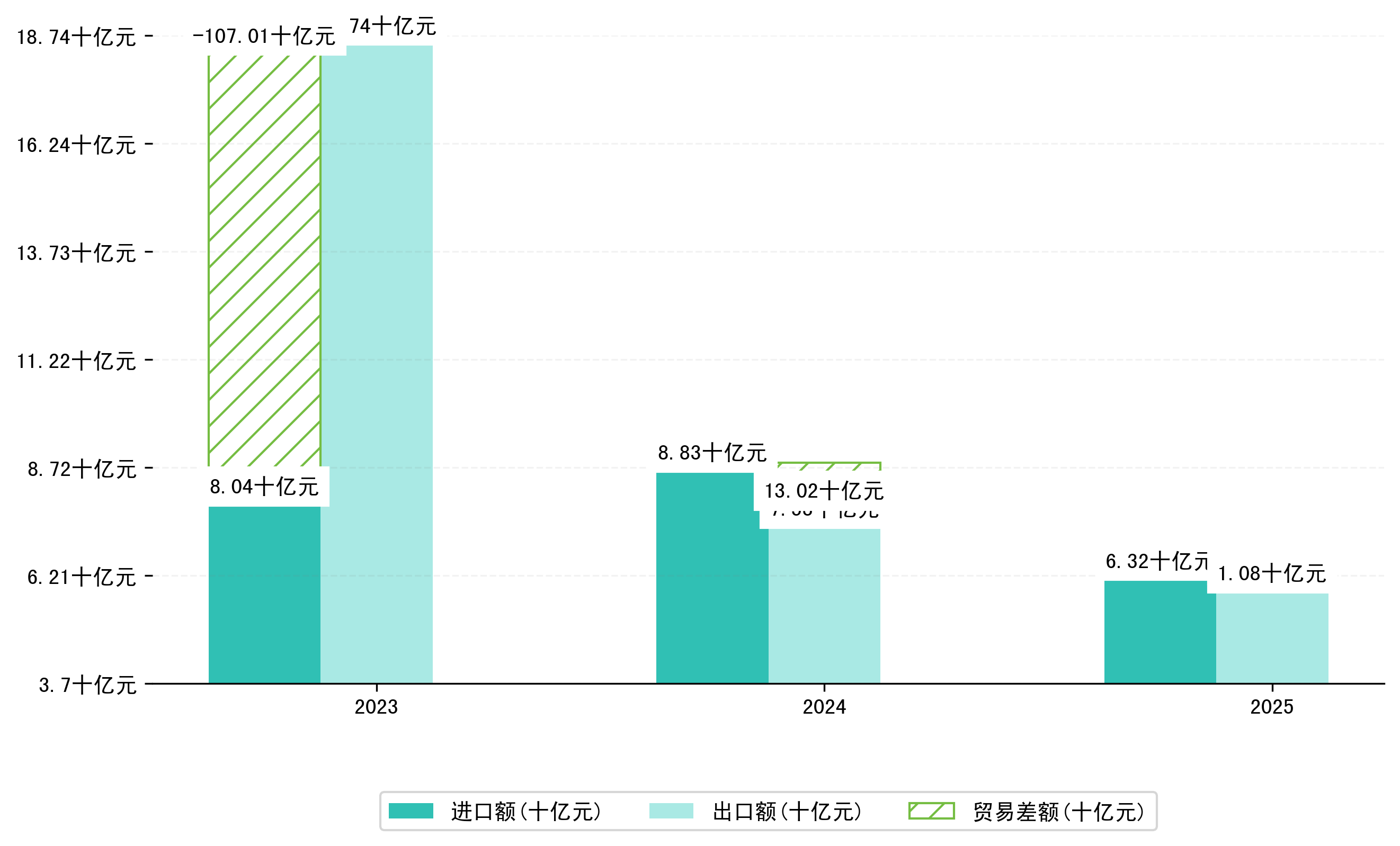 以人民币计,2025年1-6月衡阳市贸易差额为1,0840,7458万元(贸易逆差),相比上年同期增加了11,9322,2734万元,同比增加-91.67%。