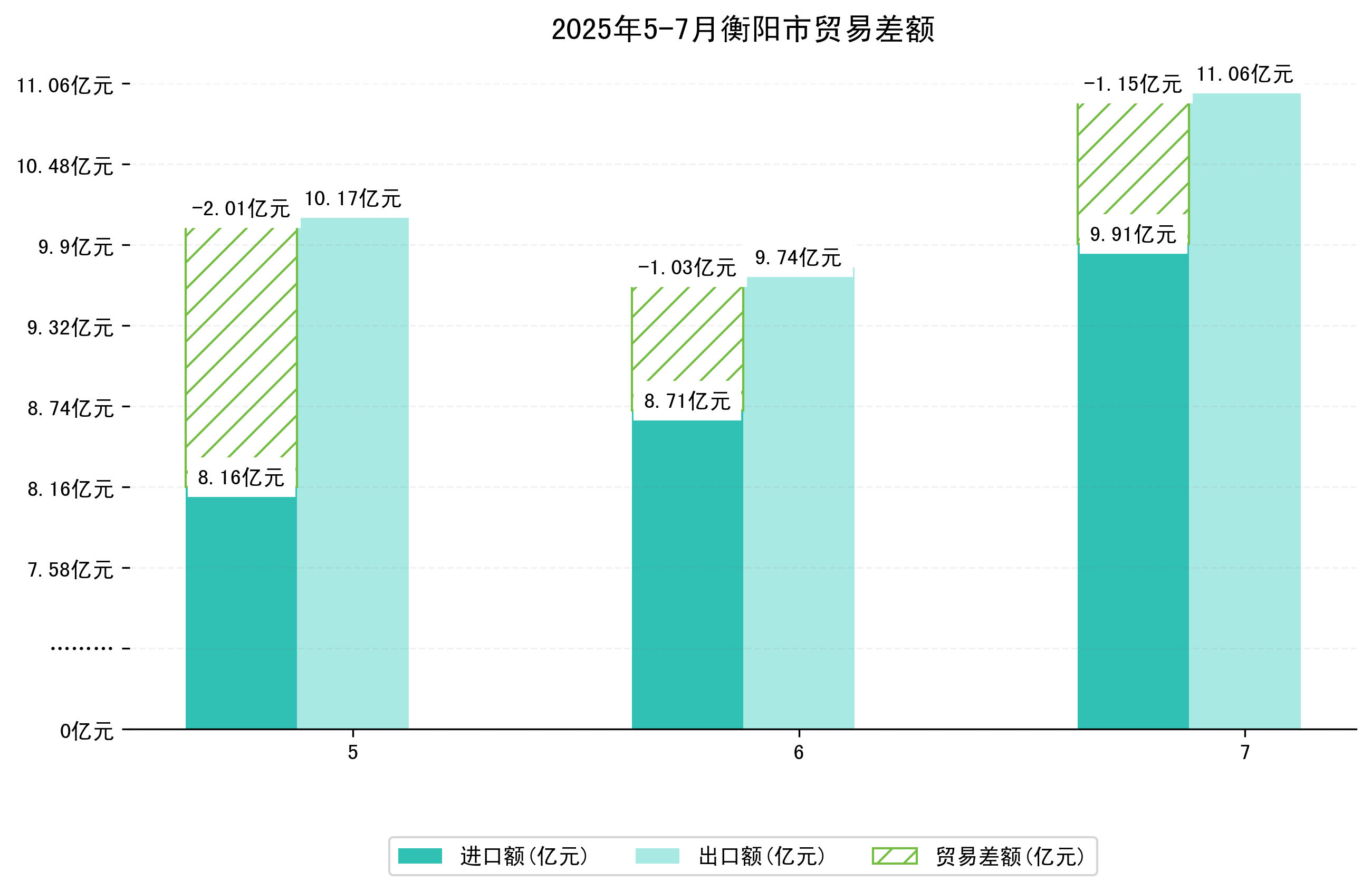 2025年7月衡阳市进出口总额及进出口差额统计分析