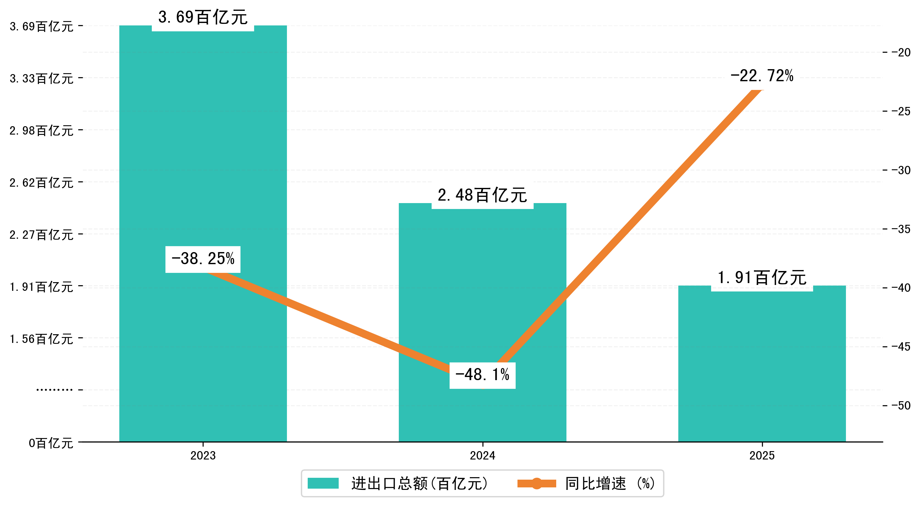 以人民币计,2025年1-9月衡阳市进出口总额为191,3087.9255万元,相比上年同期减少了56,2347.4228万元,同比减少了-22.20%。