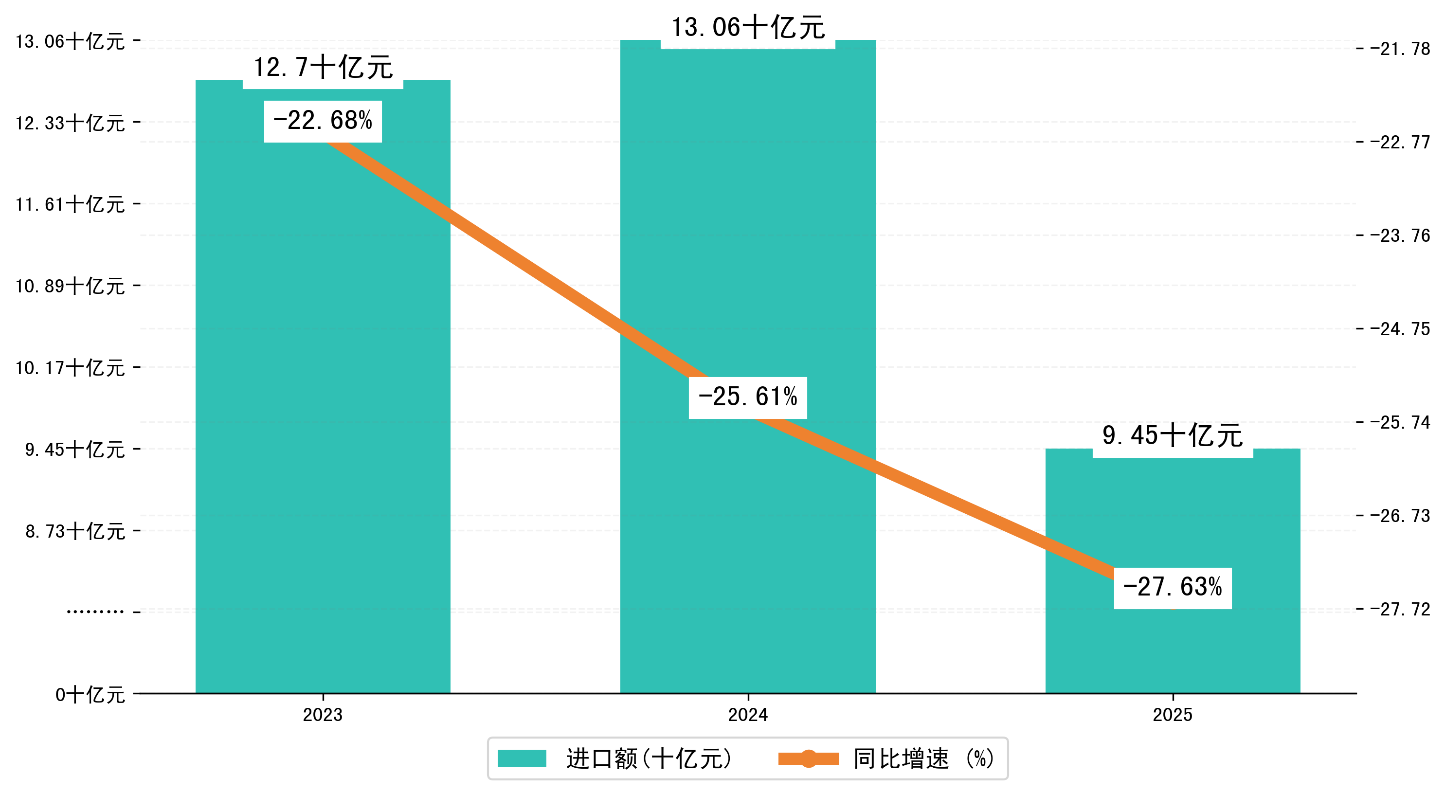 以人民币计,2025年1-9月衡阳市进口额为94,4855.461万元,相比上年同期减少了36,0687.8233万元,同比减少了-26.70%。