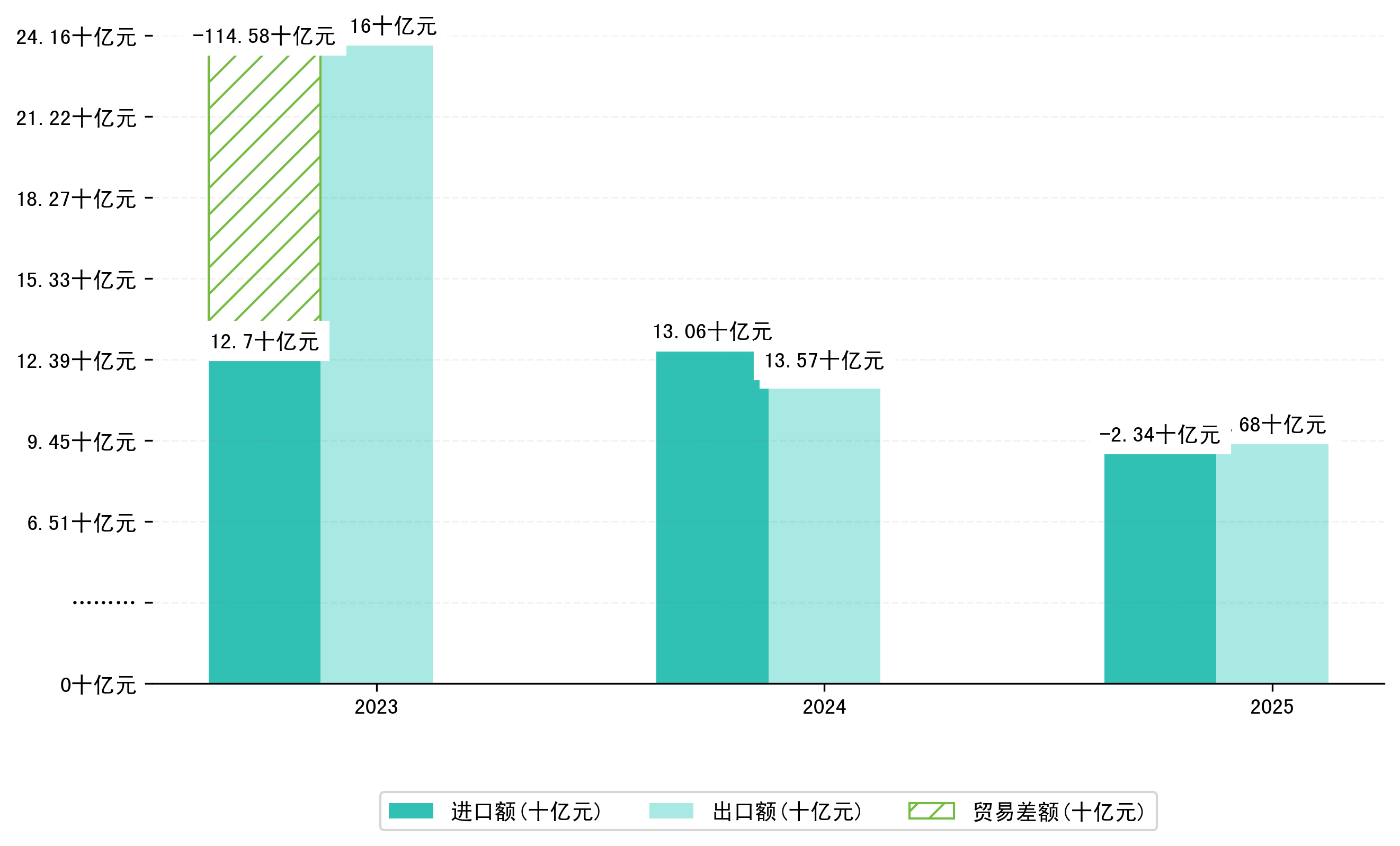 以美元计,2025年1-9月衡阳市贸易差额为3270,5697万美元(贸易顺差),相比上年同期增加了2,2362,4530万美元,同比增加-117.13%。