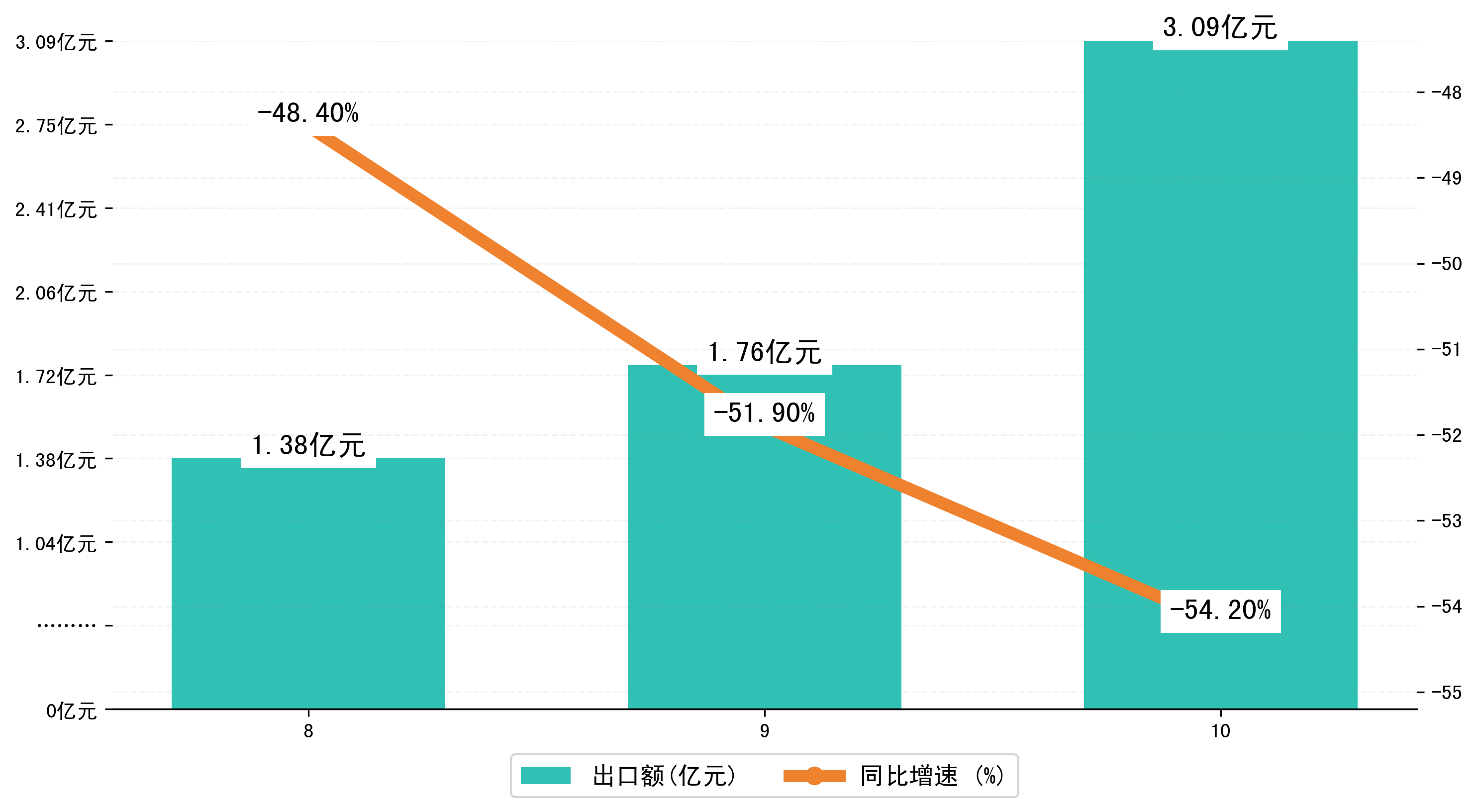 (图二:2024年8-10月淮南市出口额)