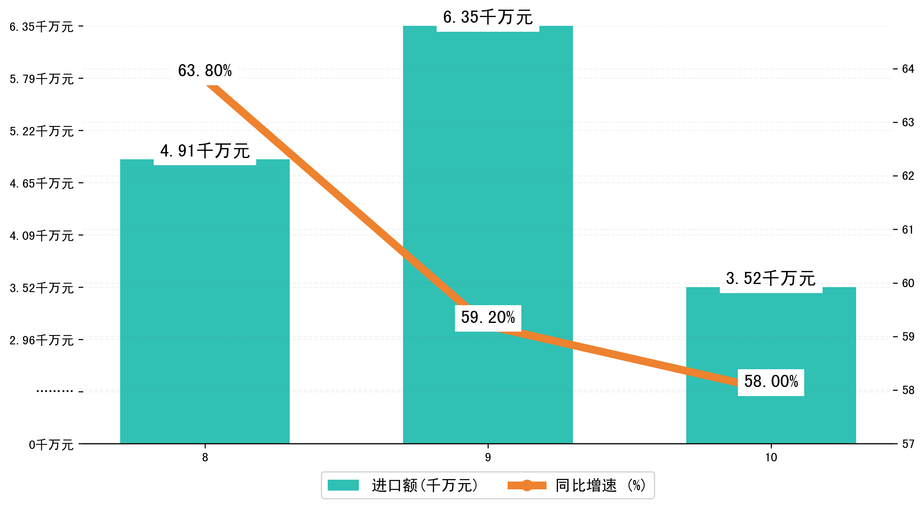(图三:2024年8-10月淮南市进口额)