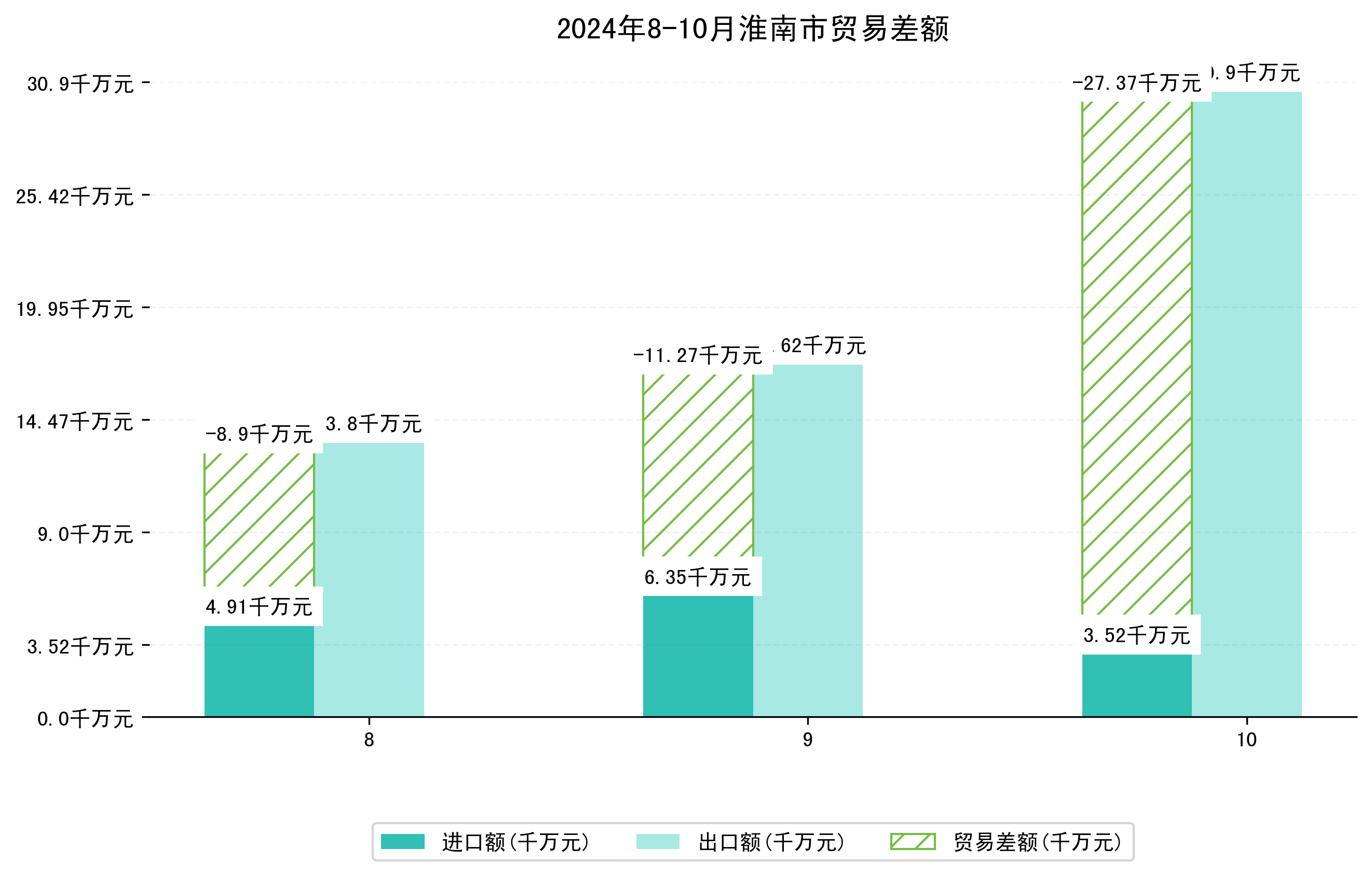 (图四:2024年8-10月淮南市贸易差额)