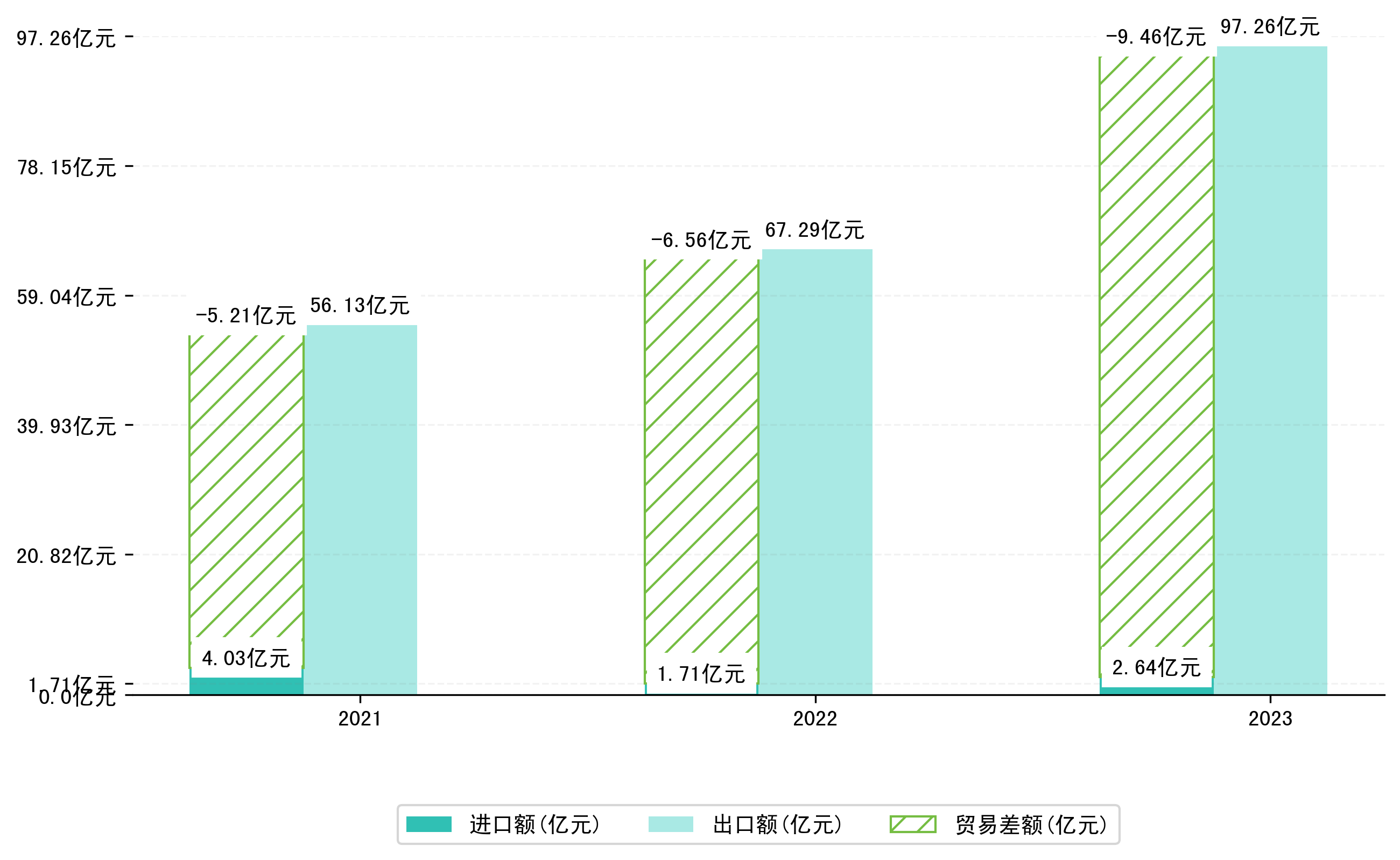 以人民币计,2023年1-10月淮南市贸易差额为94,6179,8745万元(贸易顺差),相比上年同期增加了29,0371,8210万元,同比增加44.28%。