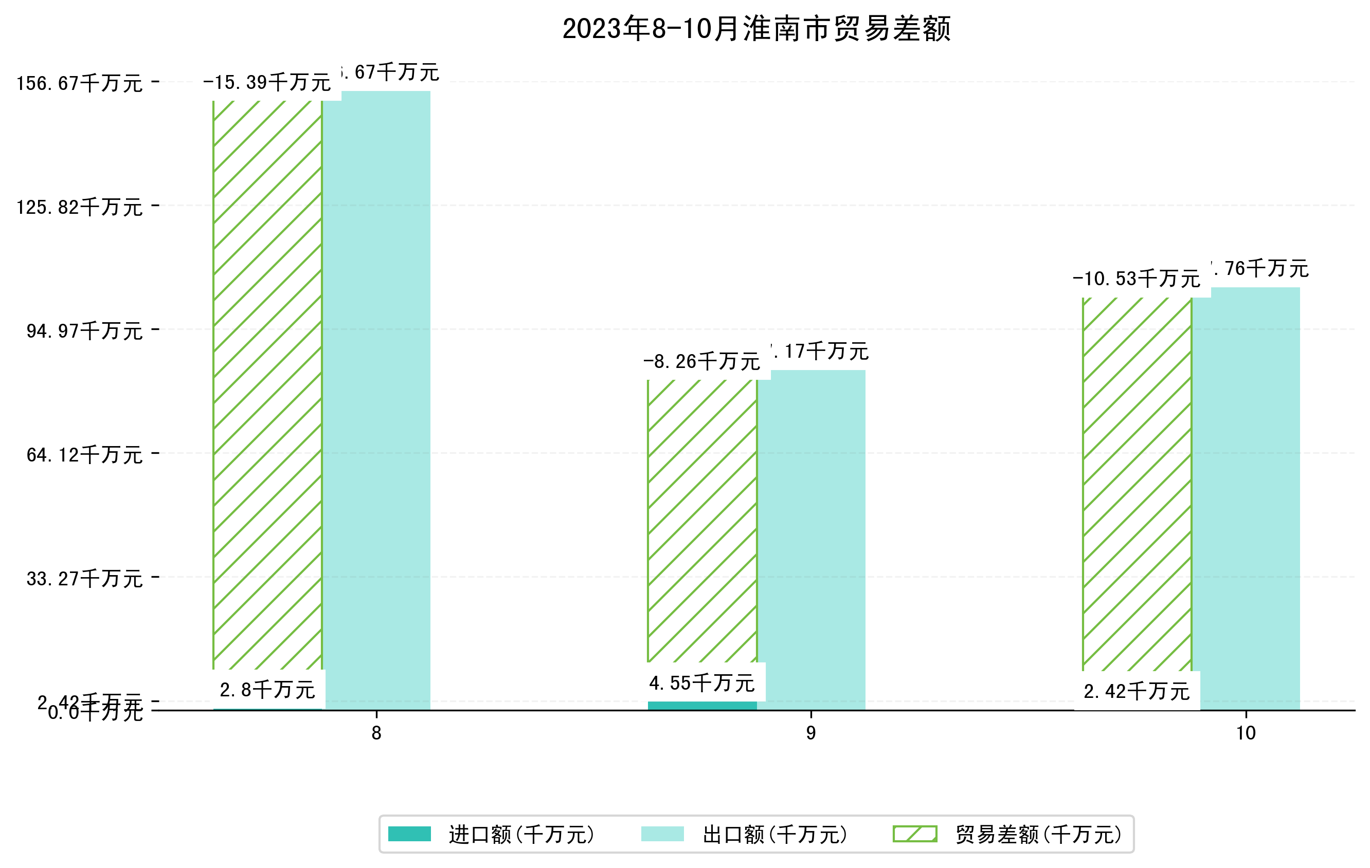 2023年10月淮南市进出口总额及进出口差额统计分析