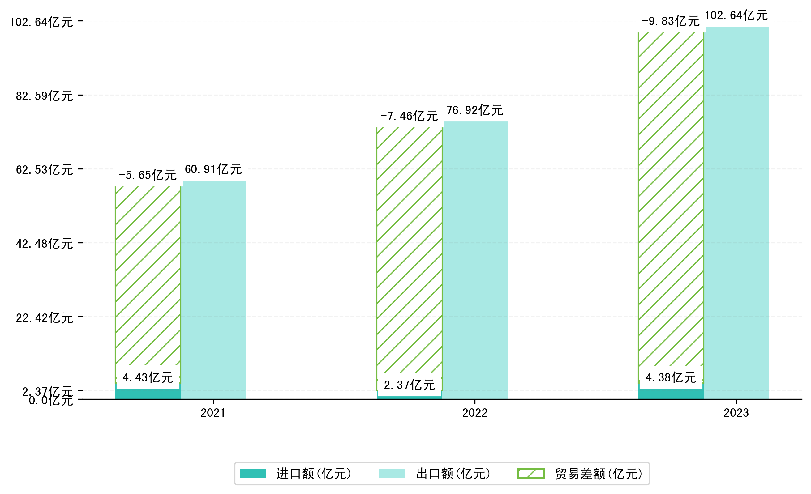 以人民币计,2023年1-12月淮南市贸易差额为98,2656,9293万元(贸易顺差),相比上年同期增加了23,7132,9130万元,同比增加31.81%。