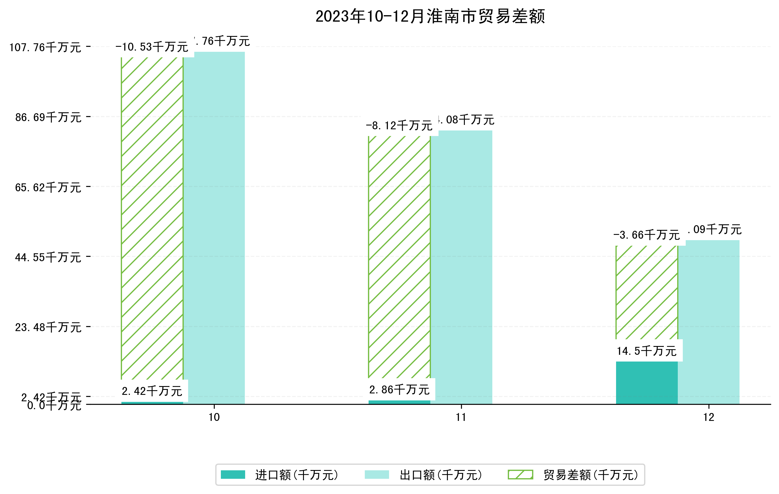2023年12月淮南市进出口总额及进出口差额统计分析