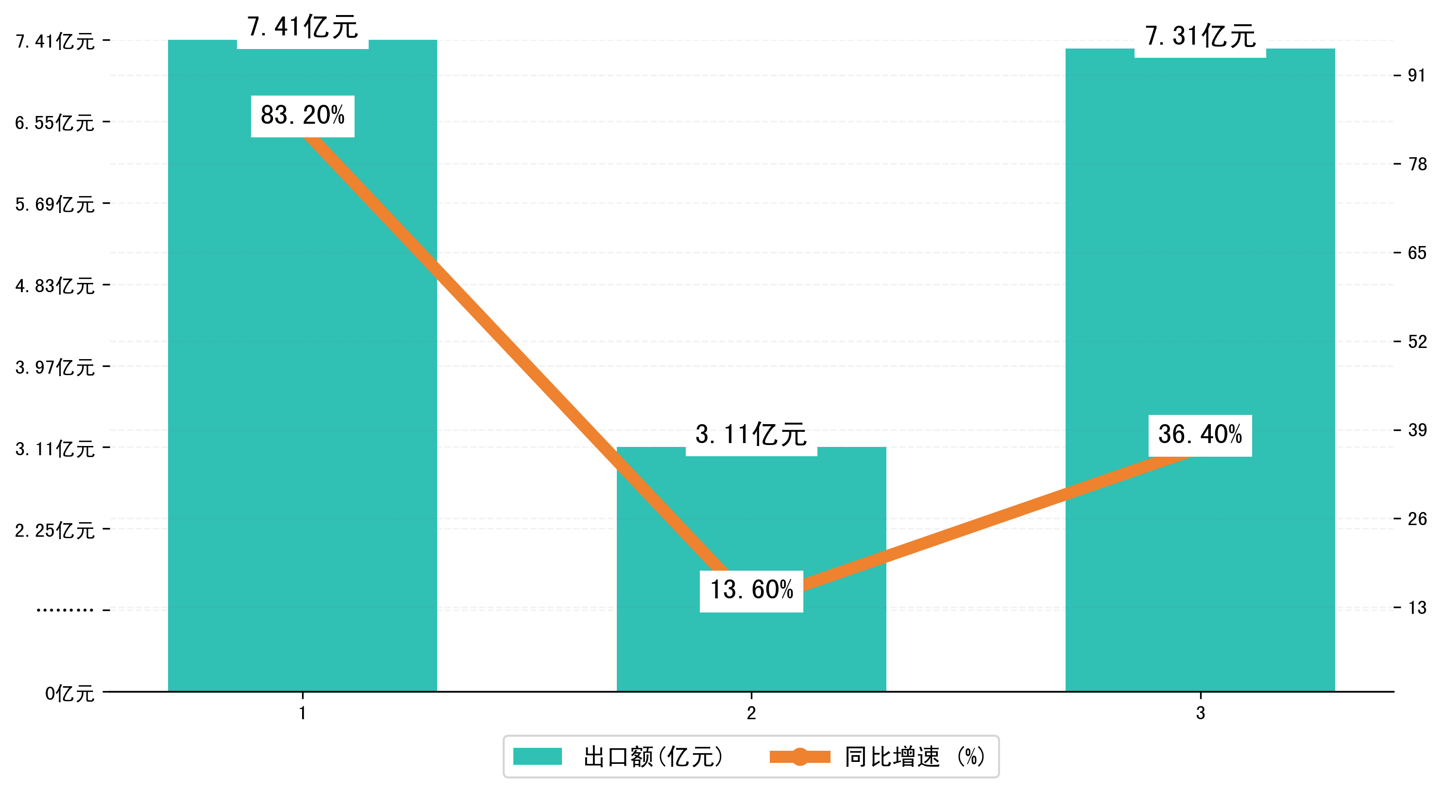 以人民币计,2024年1-3月淮南市出口额为17,8357.701万元,相比上年同期增加了3867.9573万元,同比增加了36.40%。