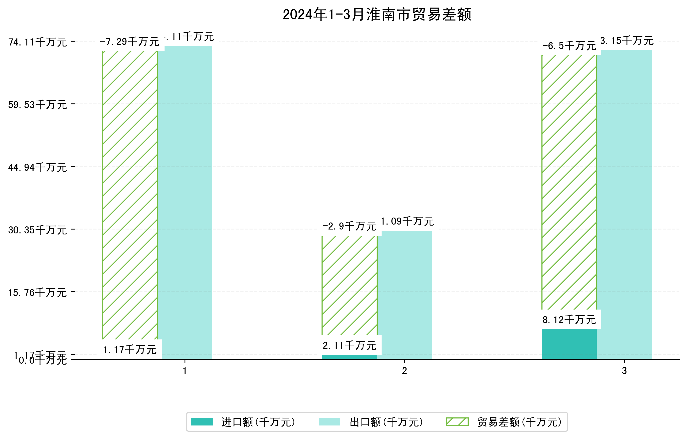 一、2024年3月淮南市单月出口总额及进出口差额统计分析