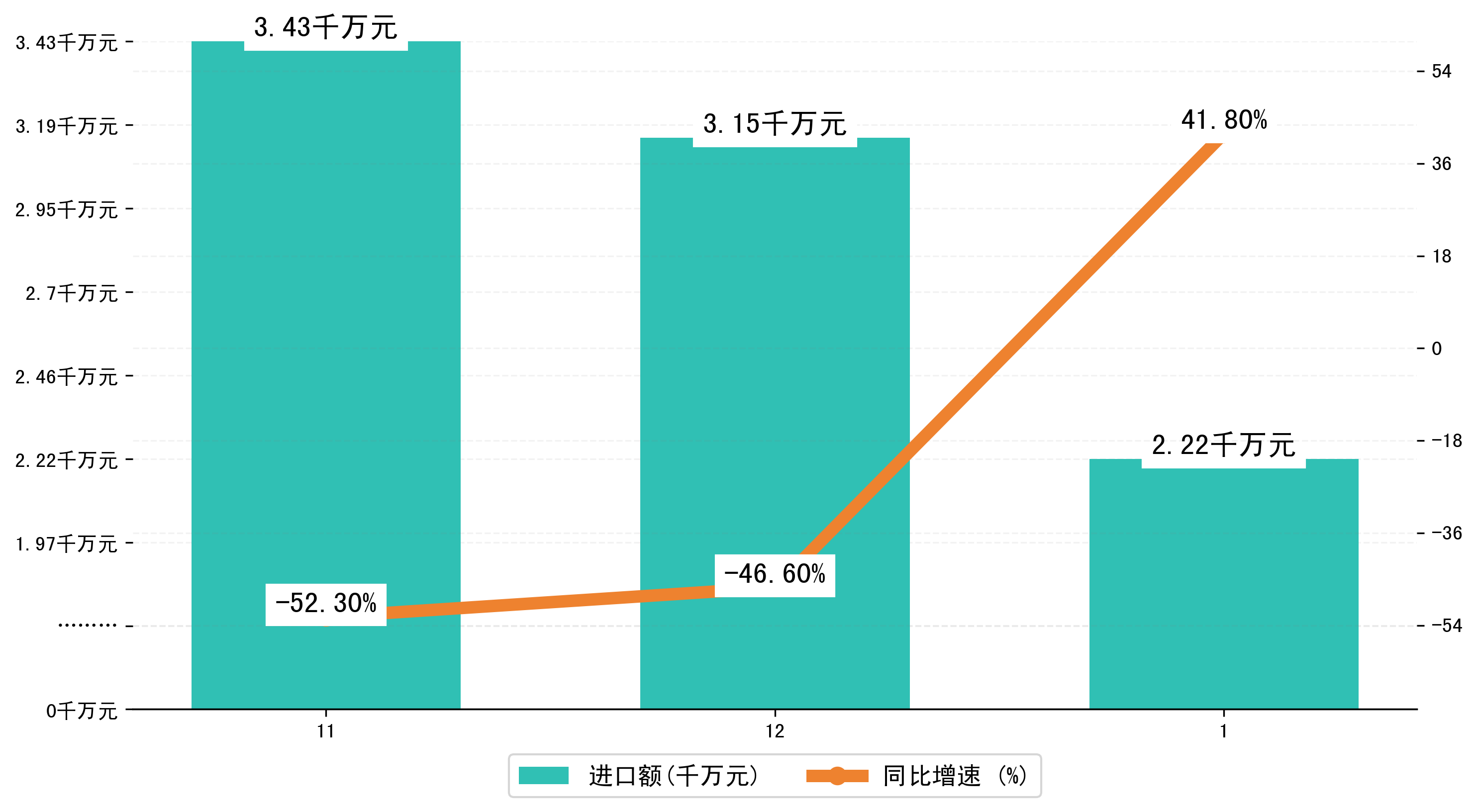 以美元计,2023年1-1月淮南市进口额为318.1814万美元,相比上年同期增加了72.7794万美元,同比增加29.70%。