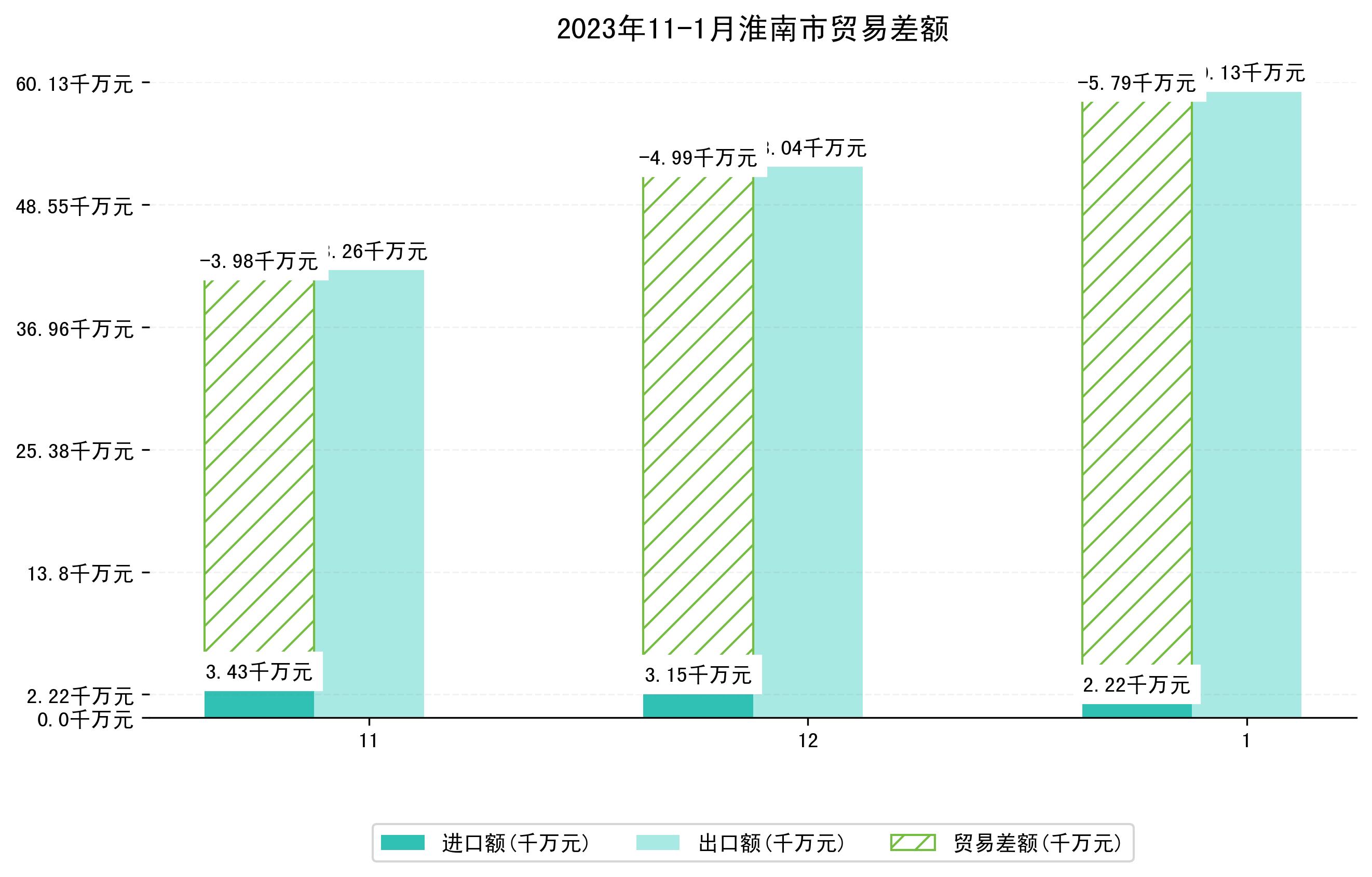 2023年1月淮南市进出口总额及进出口差额统计分析