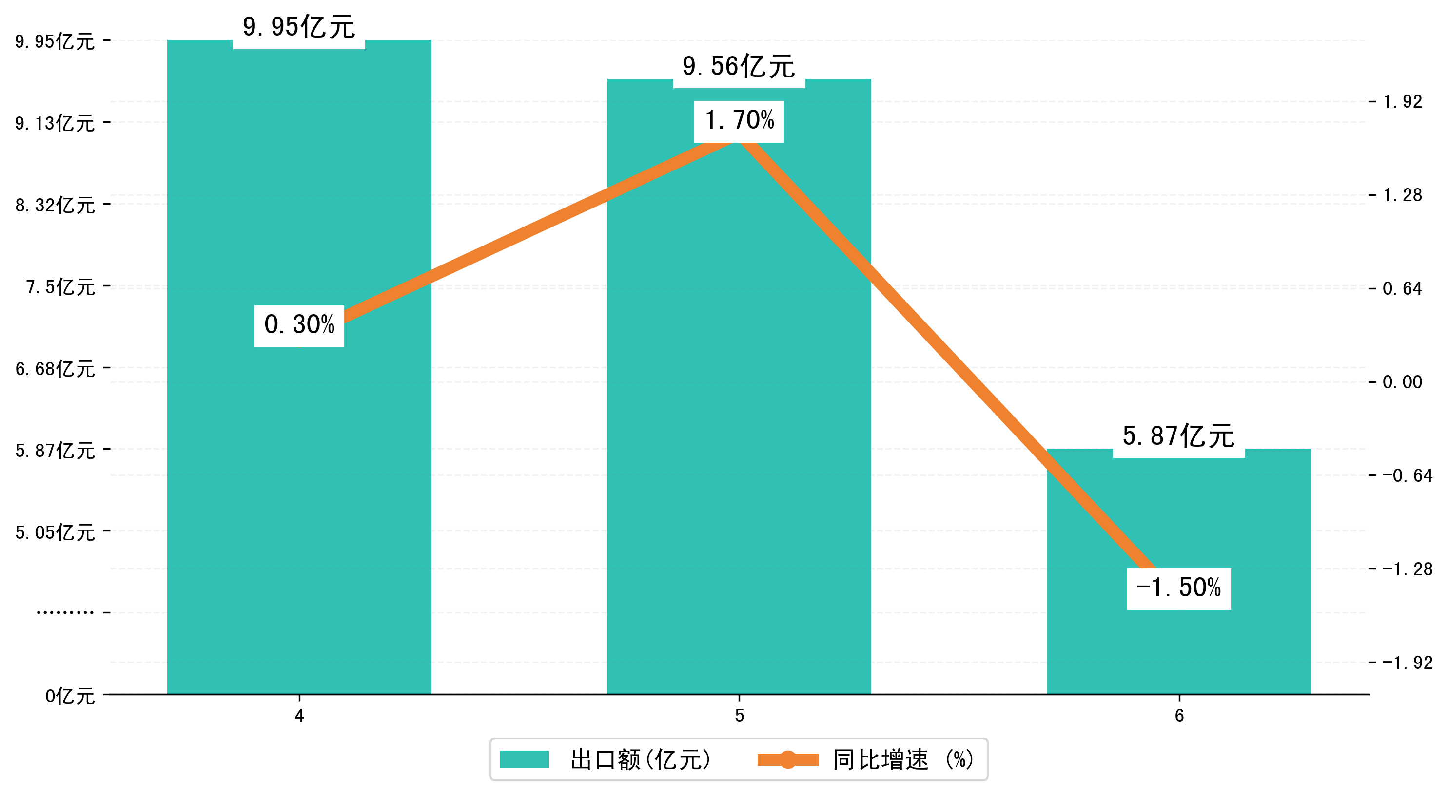 以人民币计,2023年6月淮南市出口额为5,8681.4462万元,相比上月减少了3,6888.3462万元;相比上年同期减少了1,4019.7512万元,同比减少了-1.50%。
