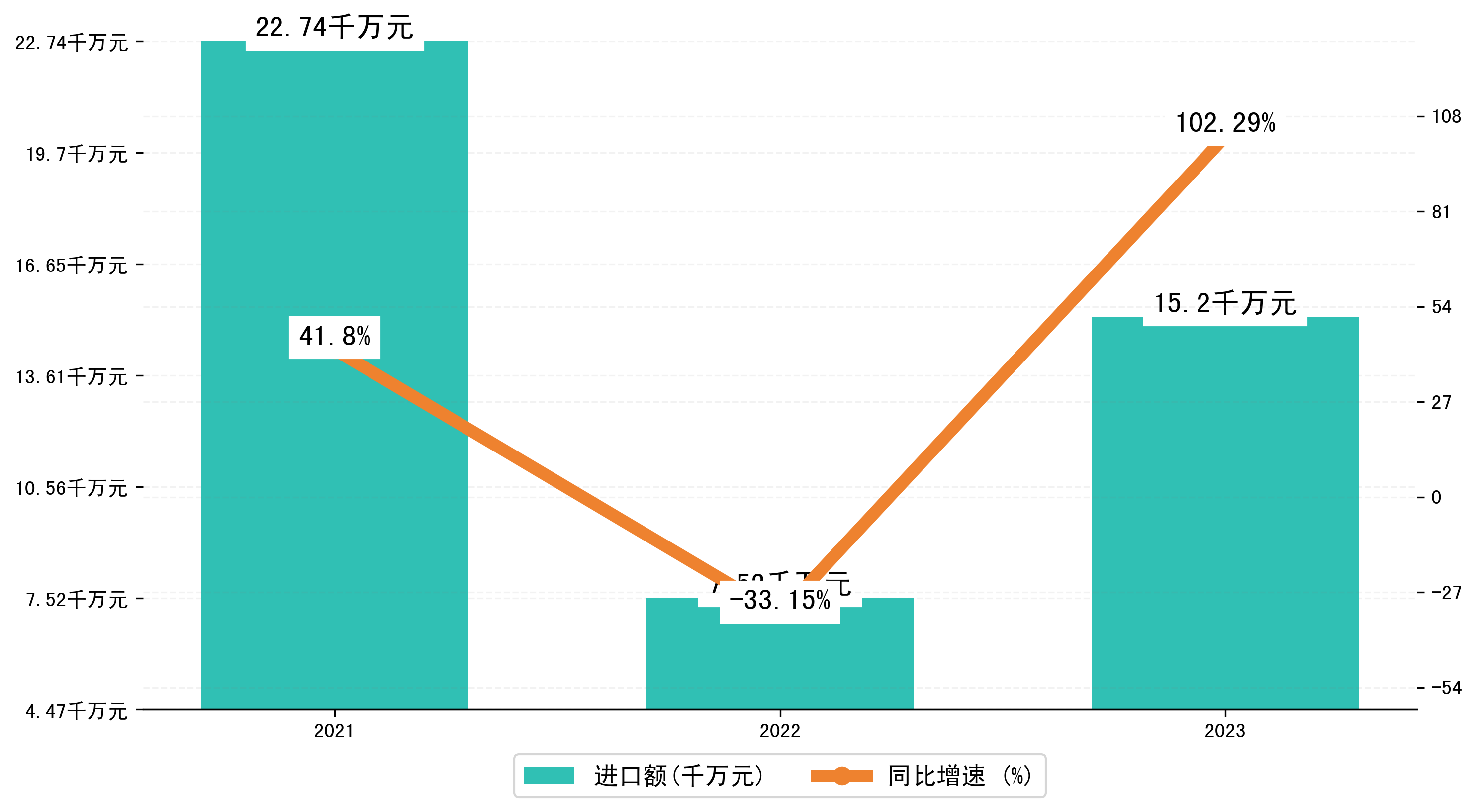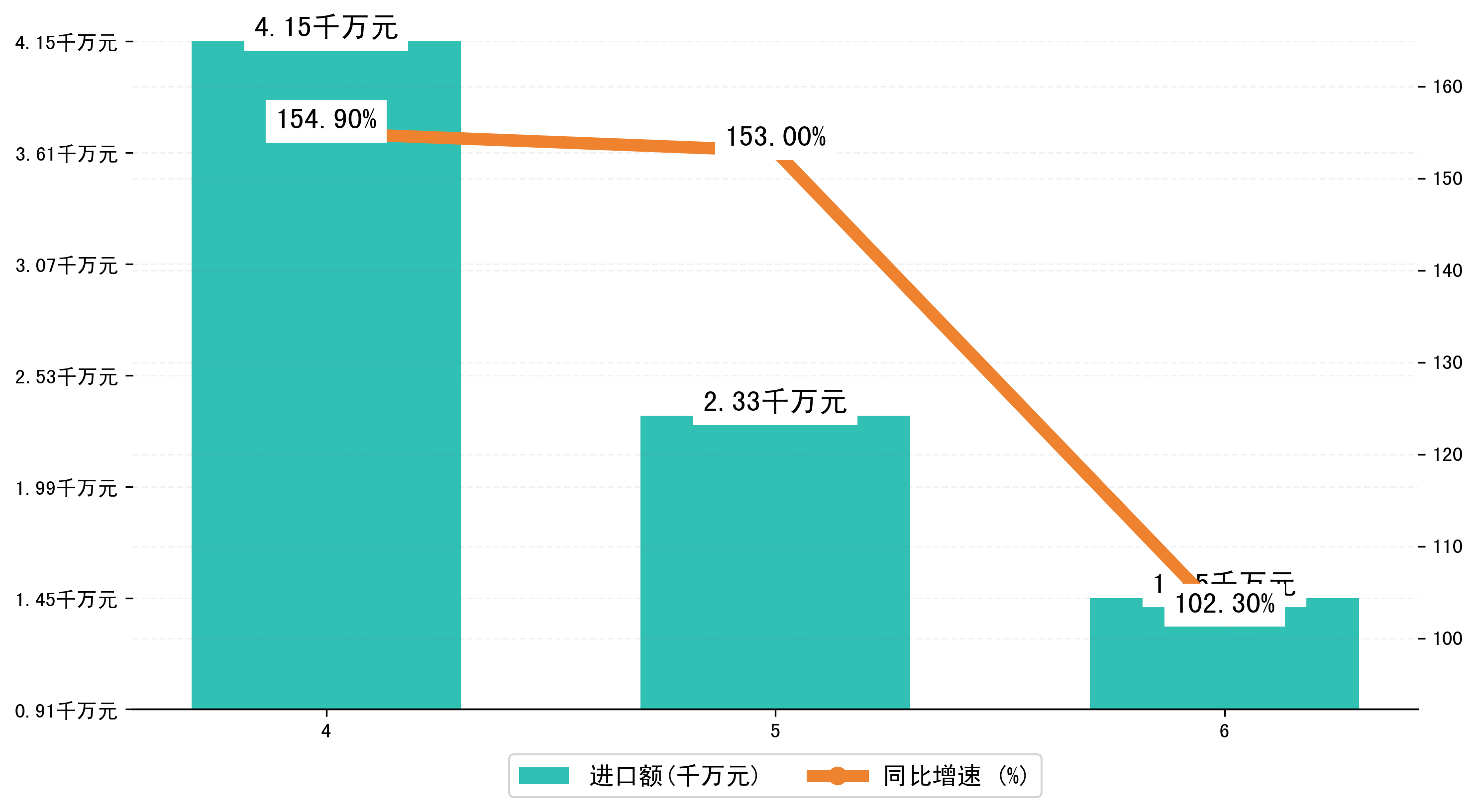 以人民币计,2023年1-6月淮南市进口额为1,5203.1602万元,相比上年同期增加了7687.7078万元,同比增加了102.30%。
