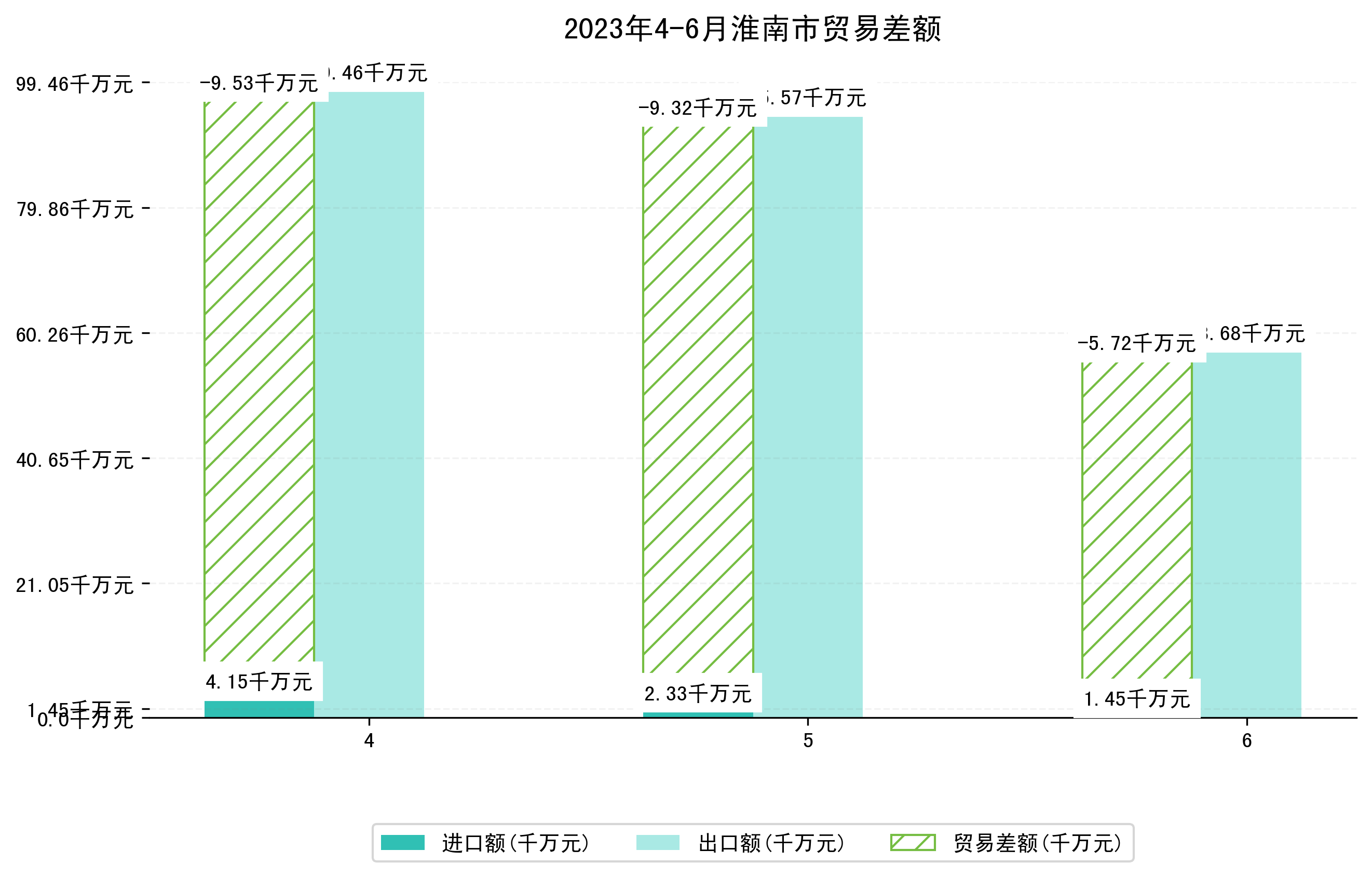 2023年6月淮南市进出口总额及进出口差额统计分析