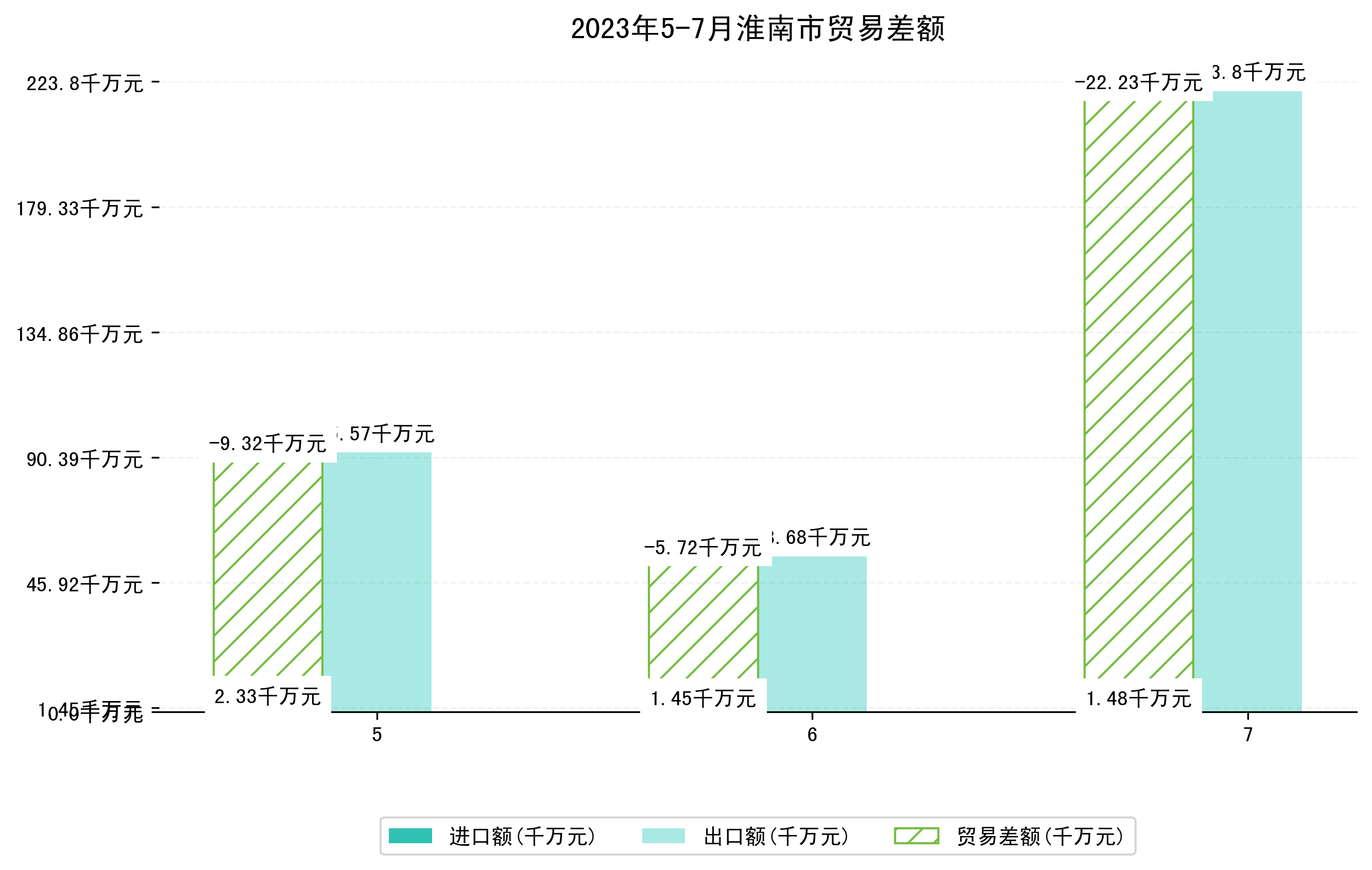2023年7月淮南市进出口总额及进出口差额统计分析