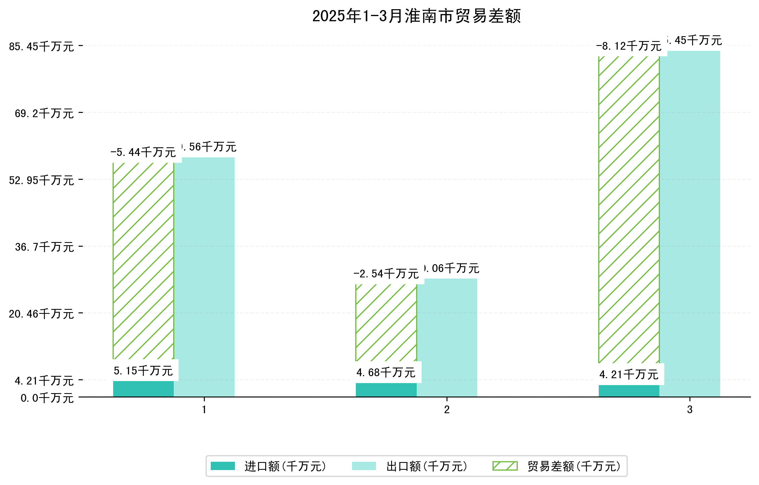 一、2025年3月淮南市单月出口总额及进出口差额统计分析