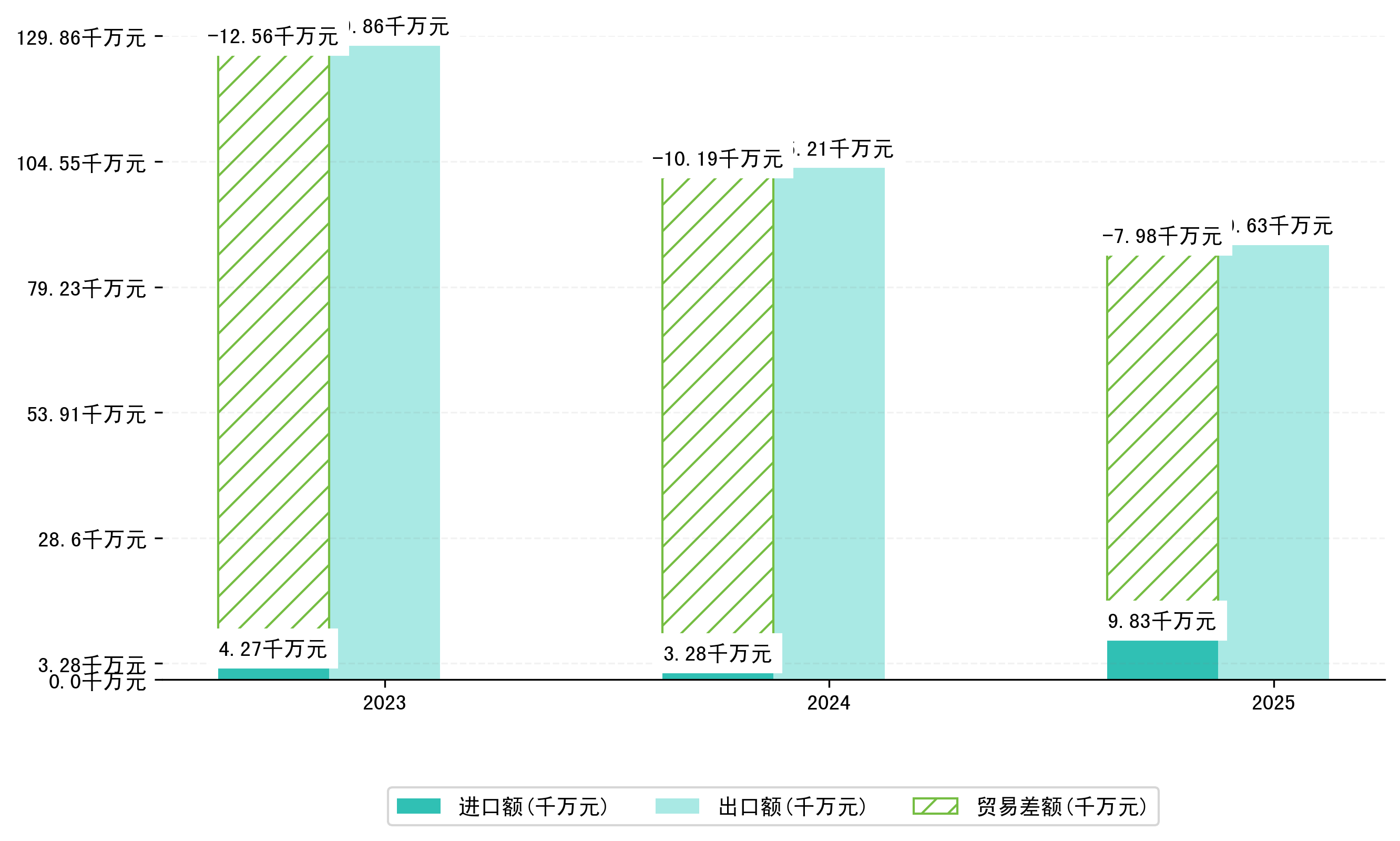 以美元计,2025年1-2月淮南市贸易差额为1,1103,1362万美元(贸易顺差),相比上年同期减少了3249,5808万美元,同比减少-22.64%。