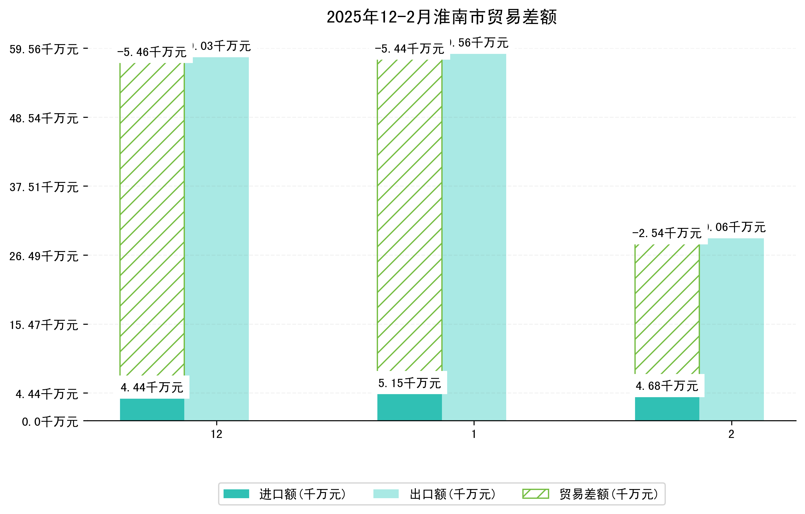 2025年2月淮南市进出口总额及进出口差额统计分析