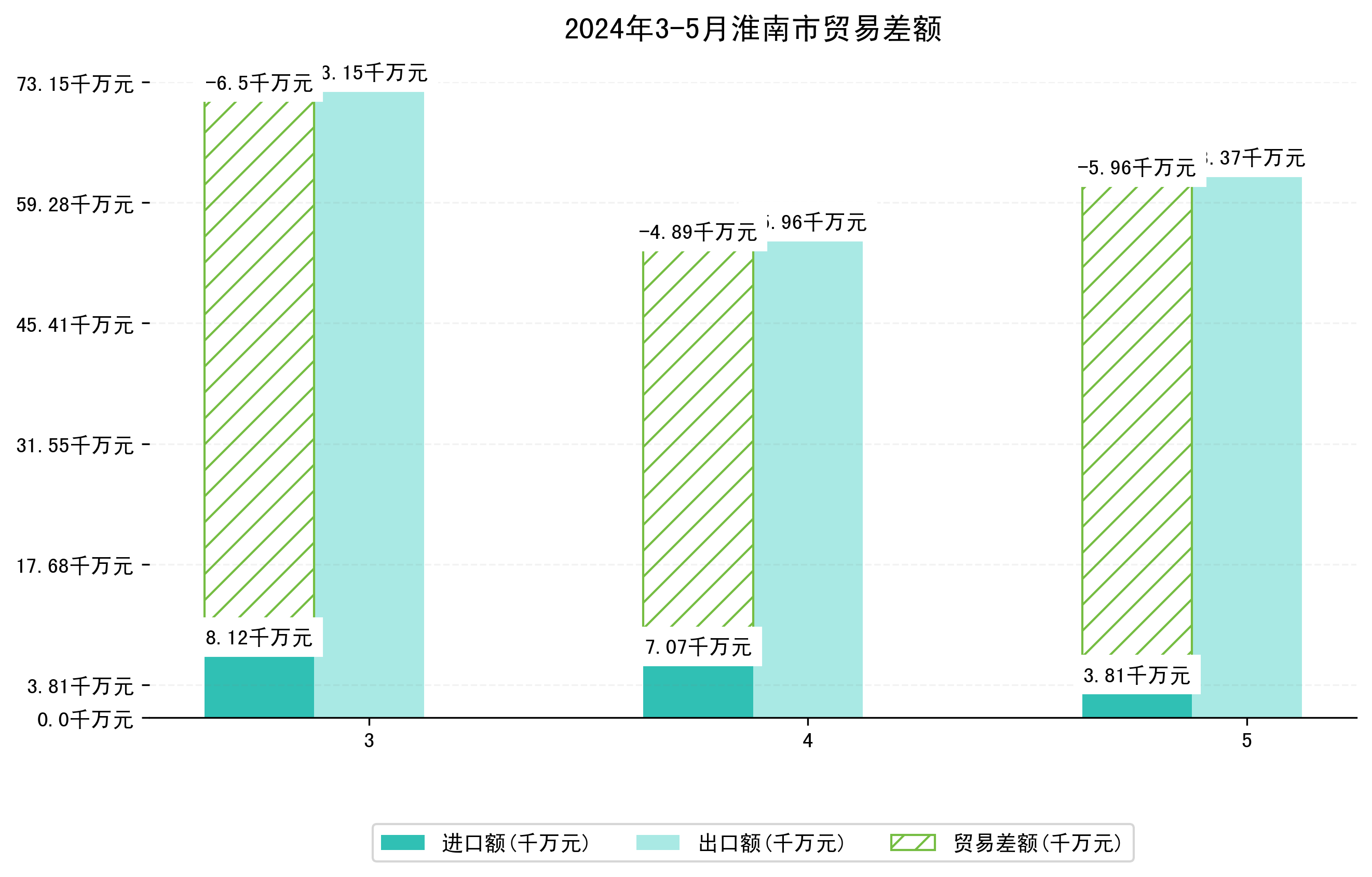 (图四:2024年3-5月淮南市贸易差额)
