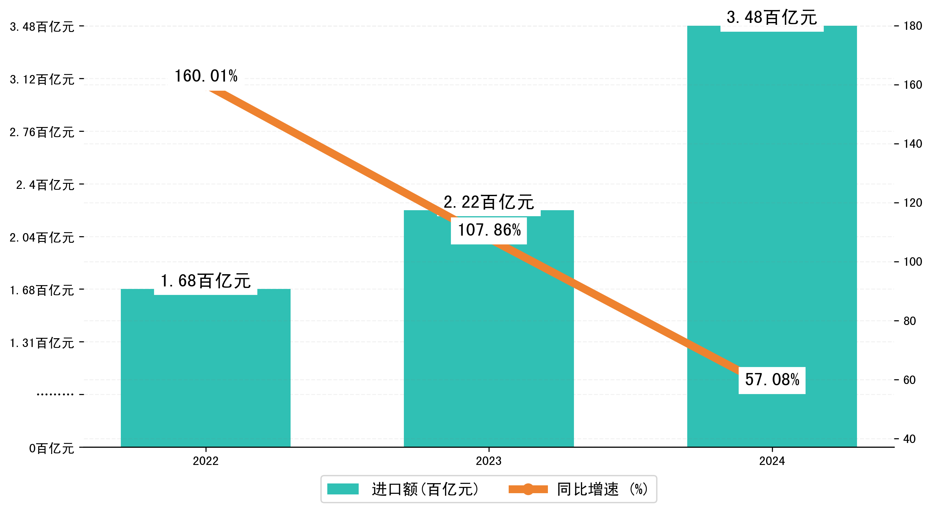 以人民币计,2024年1-10月黄石市进口额为348,3643.24万元,相比上年同期增加了126,5922.553万元,同比增加了59.50%。
