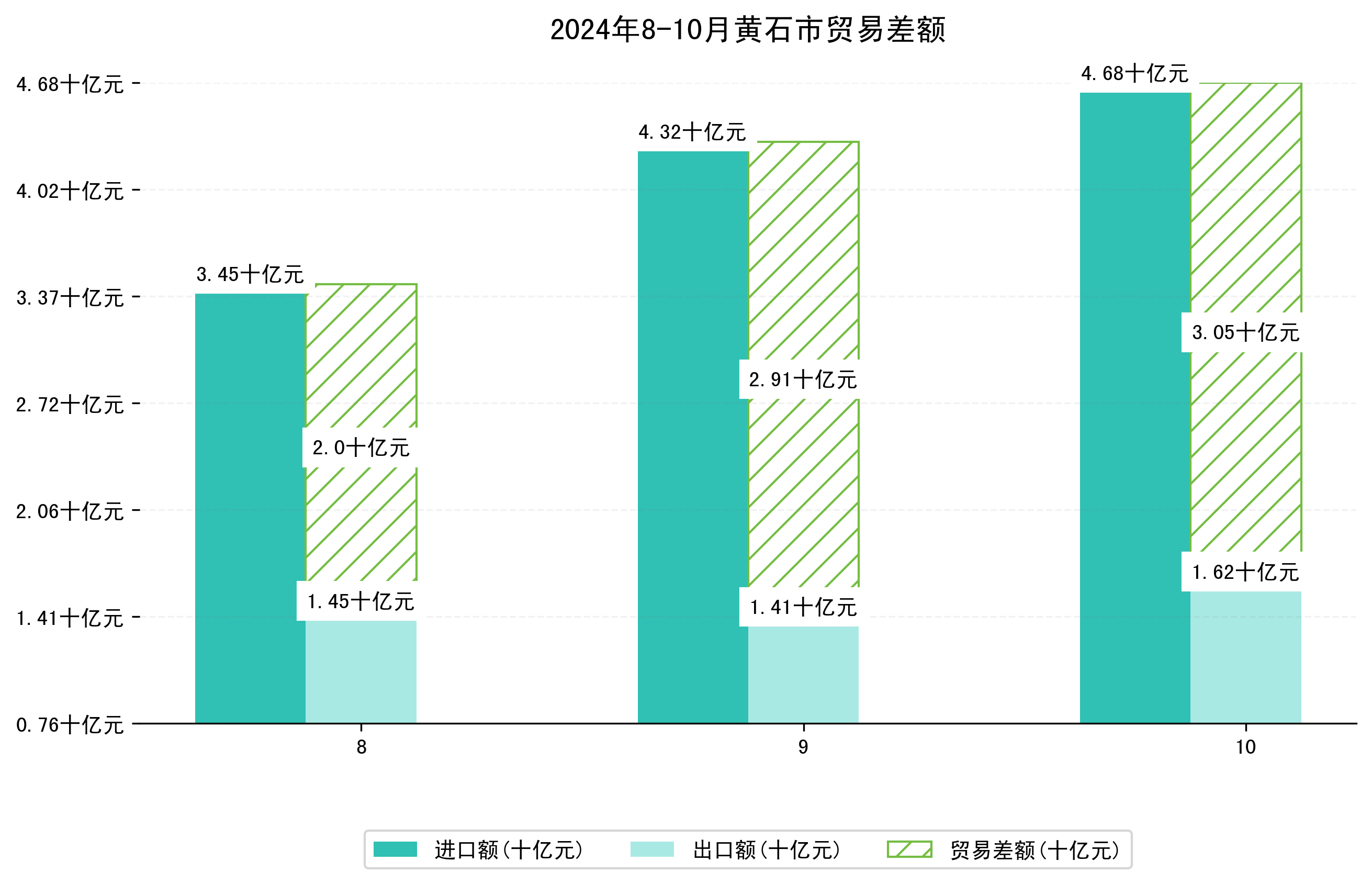 2024年10月黄石市进出口总额及进出口差额统计分析
