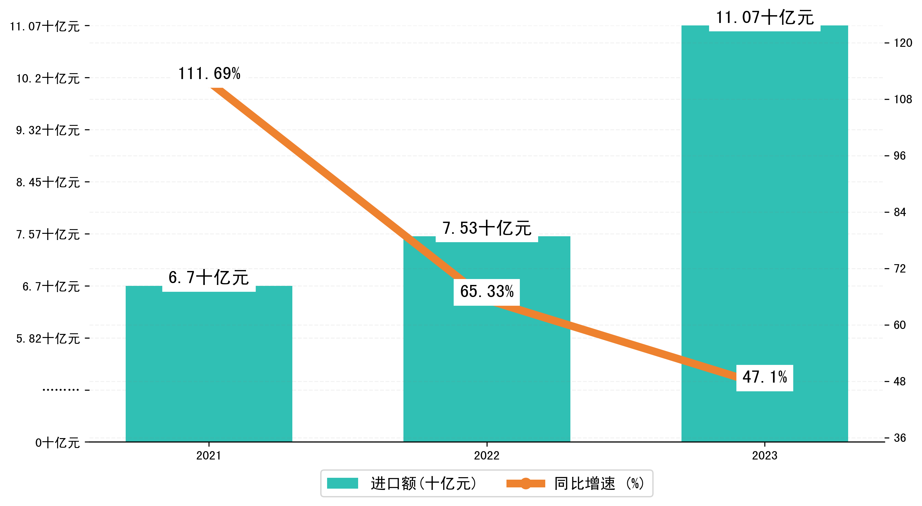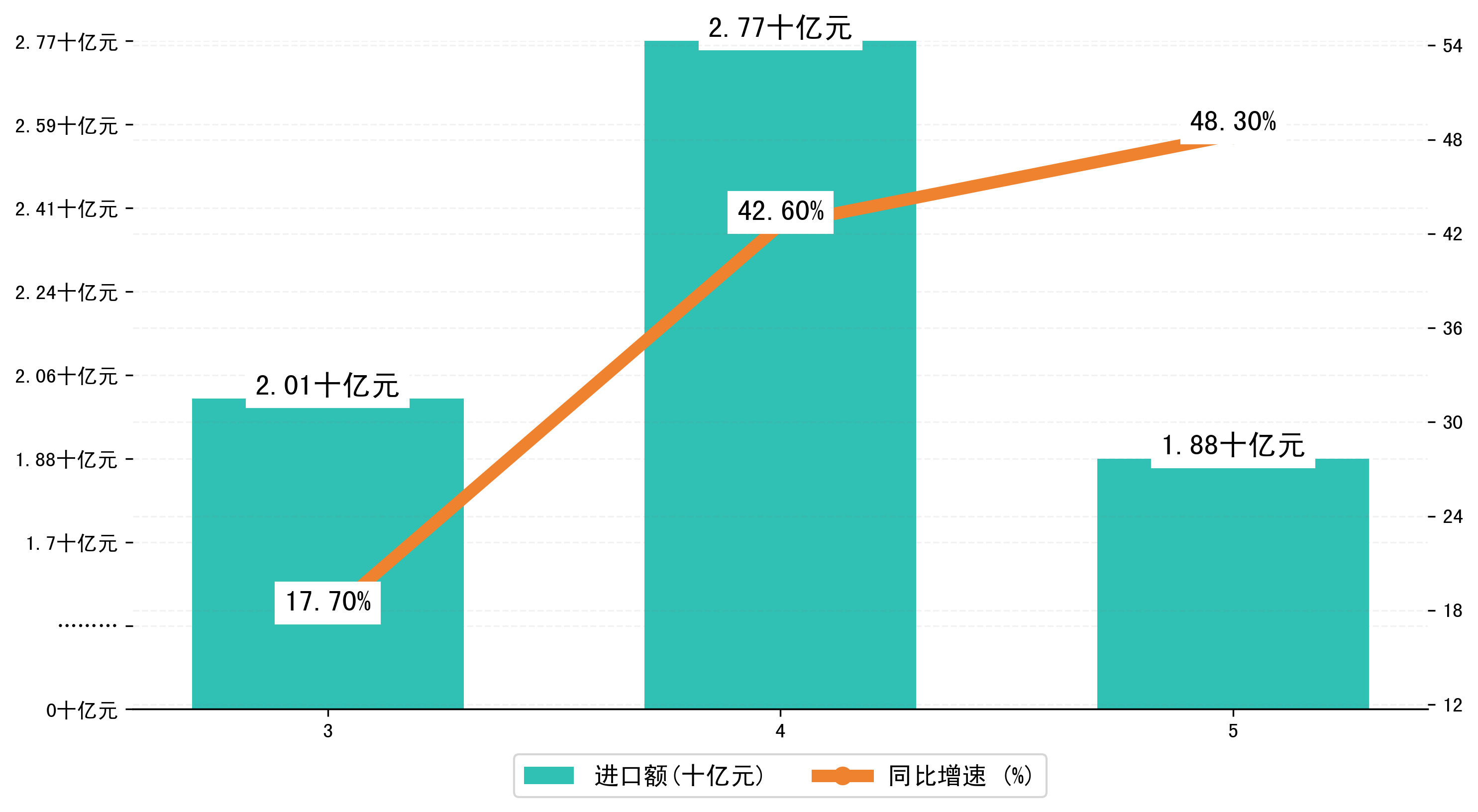 以人民币计,2023年1-5月黄石市进口额为110,7021.7552万元,相比上年同期增加了35,4470.4769万元,同比增加了48.30%。