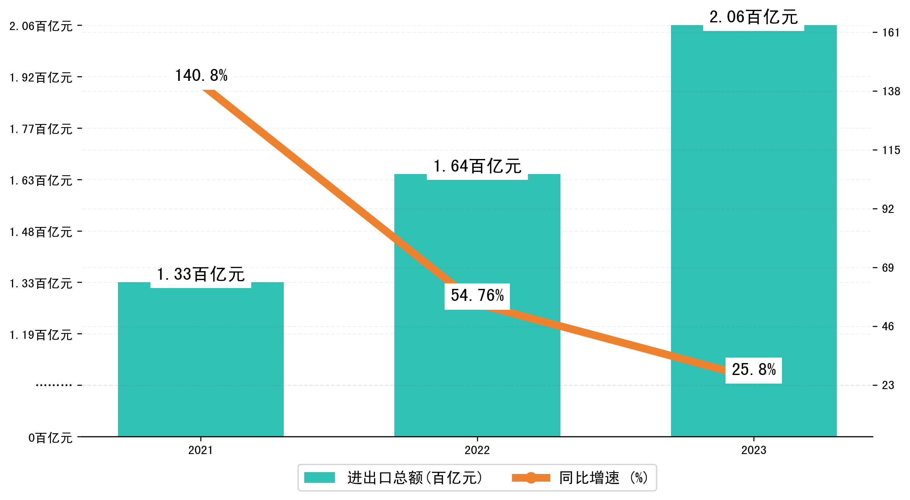 以人民币计,2023年1-5月黄石市进出口总额为206,3342.5299万元,相比上年同期增加了42,3171.3068万元,同比增加了26.60%。