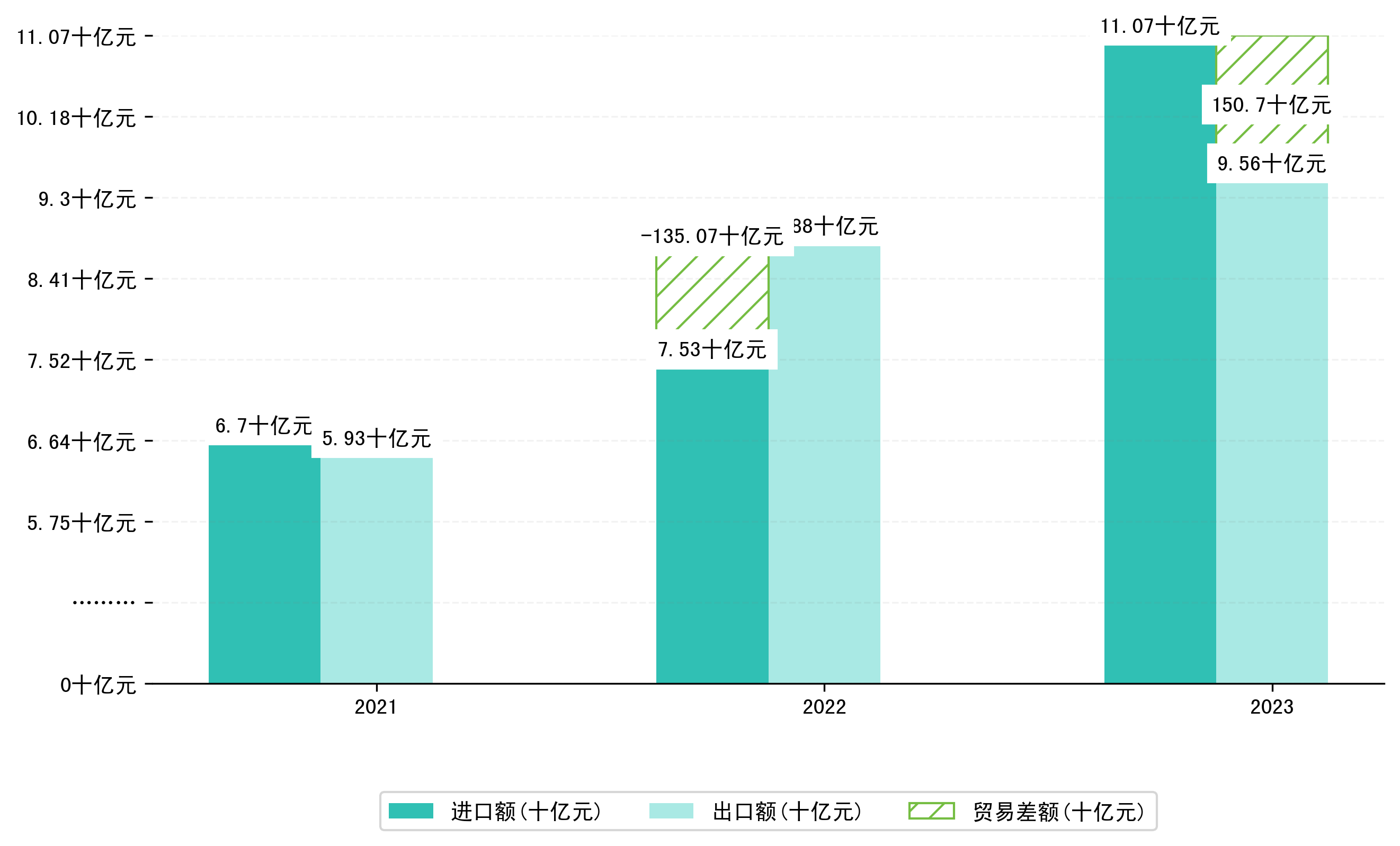 以人民币计,2023年1-5月黄石市贸易差额为15,0700,9805万元(贸易逆差),相比上年同期减少了28,5769,6470万元,同比减少-211.57%。
