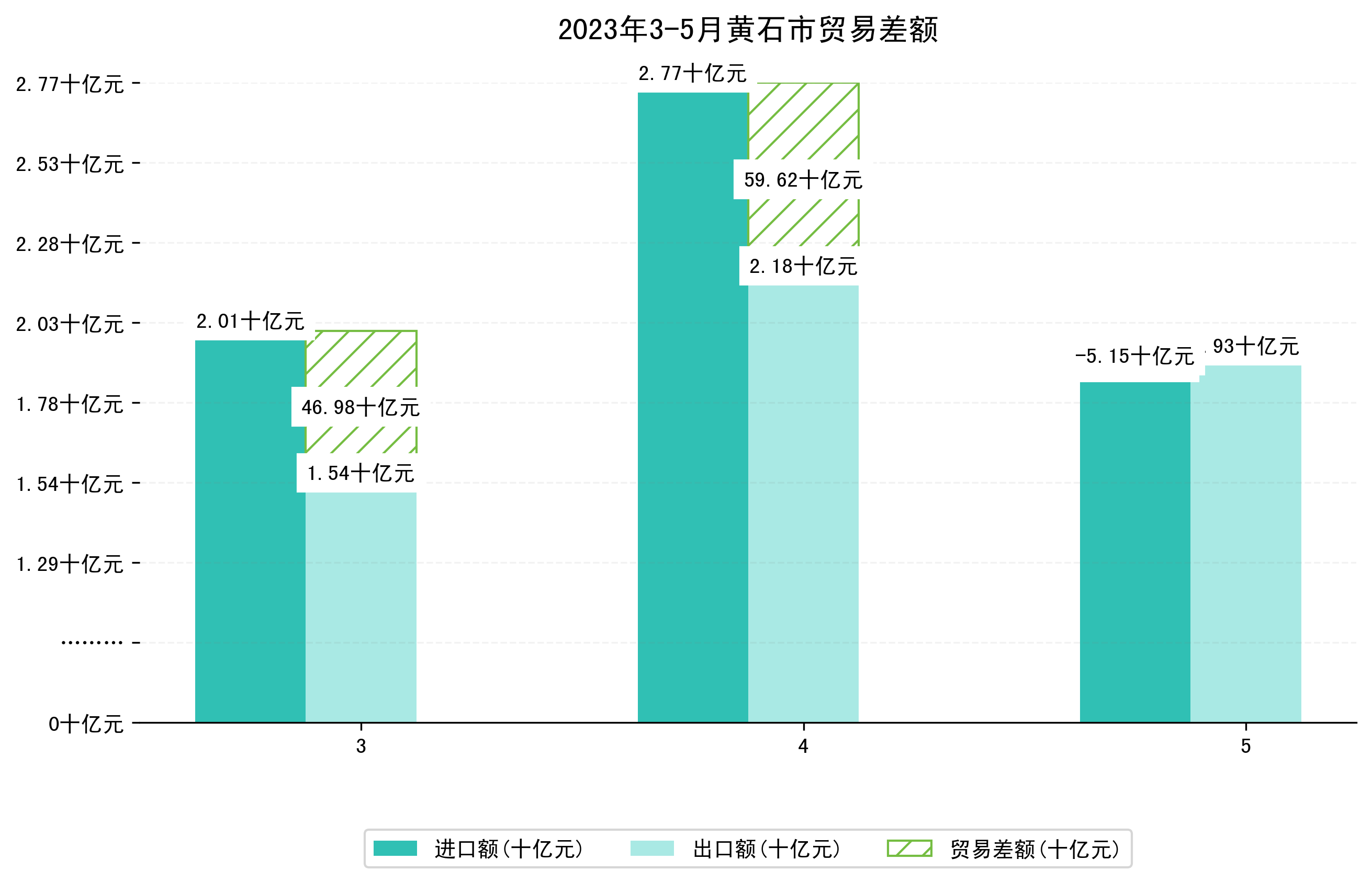 2023年5月黄石市进出口总额及进出口差额统计分析