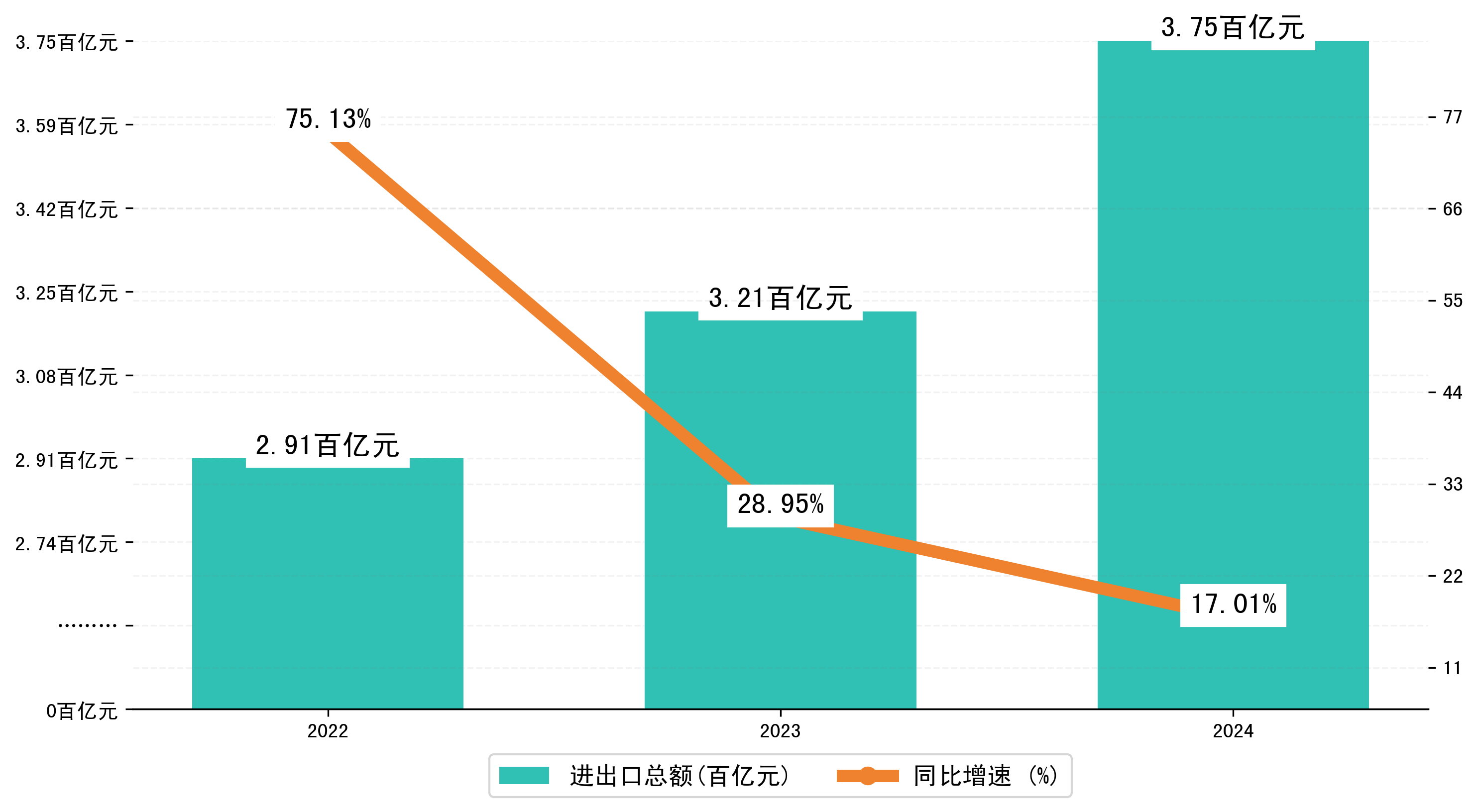 以人民币计,2024年1-8月黄石市进出口总额为375,4518.9564万元,相比上年同期增加了54,5876.5389万元,同比增加了18.40%。