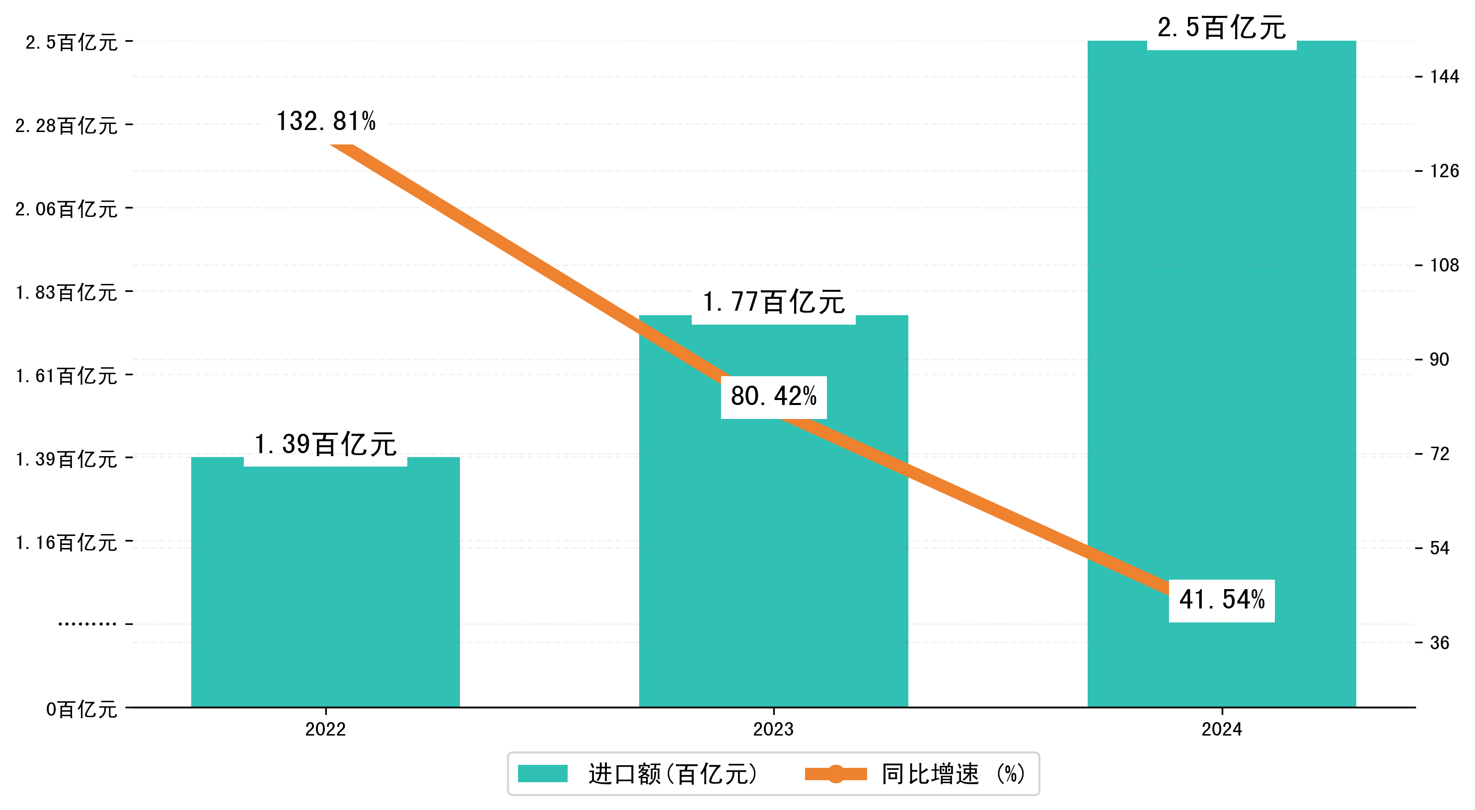 以人民币计,2024年1-8月黄石市进口额为250,3119.5324万元,相比上年同期增加了73,4685.7631万元,同比增加了44.40%。