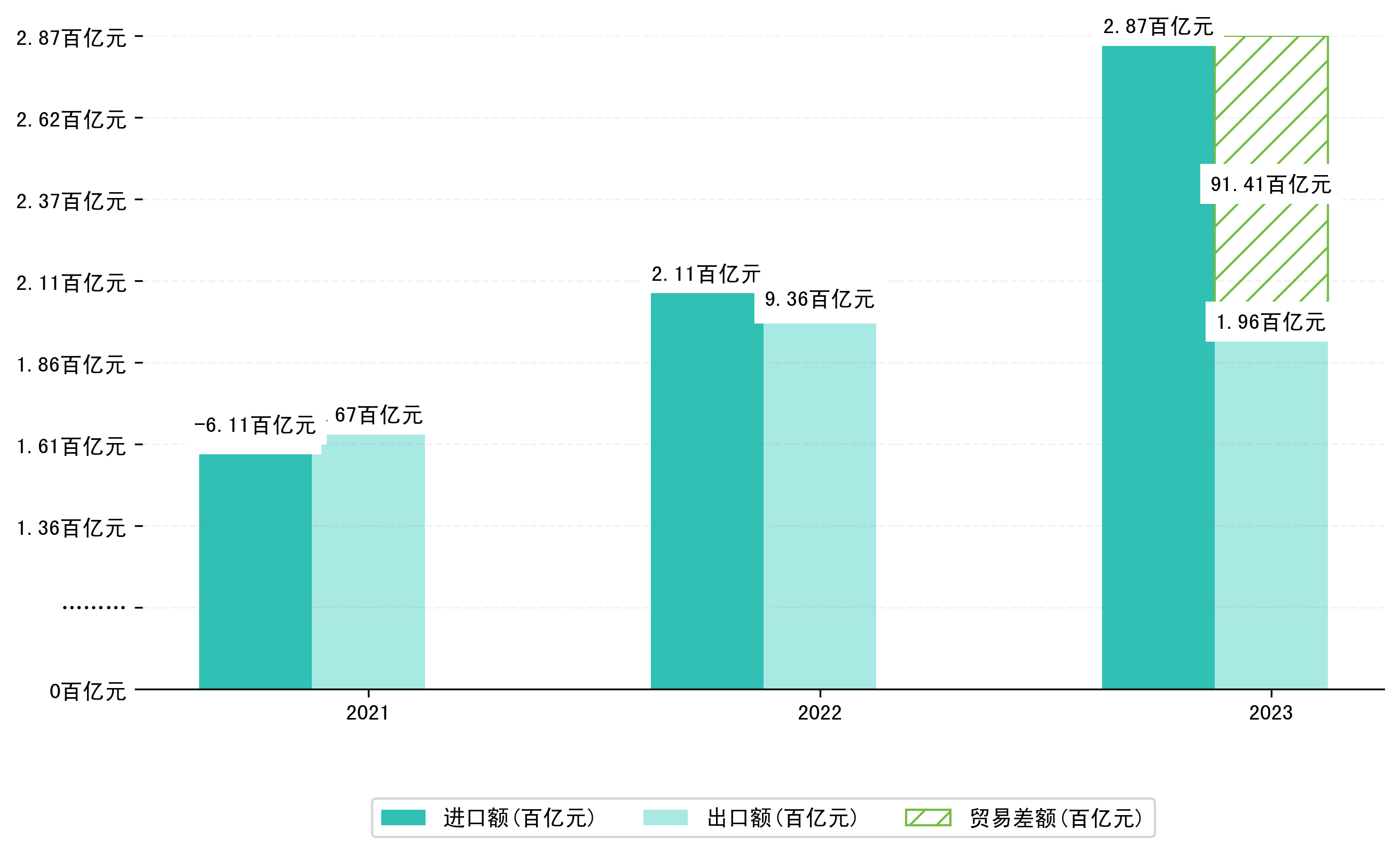以人民币计,2023年12月黄石市贸易差额为32,5251,0805万元(贸易逆差),相比上月减少了30,3912,8876万元,即4,2301,8200万美元;相比上年同期减少了16,3537,1912万元,同比减少101.13%。