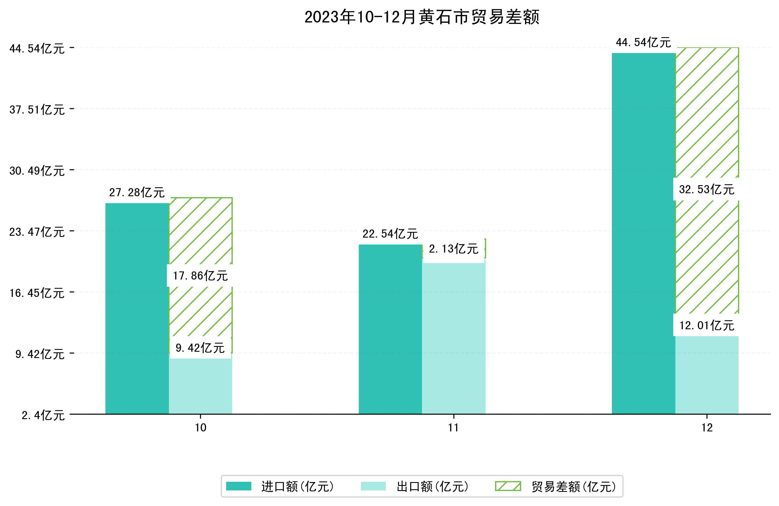 2023年12月黄石市进出口总额及进出口差额统计分析
