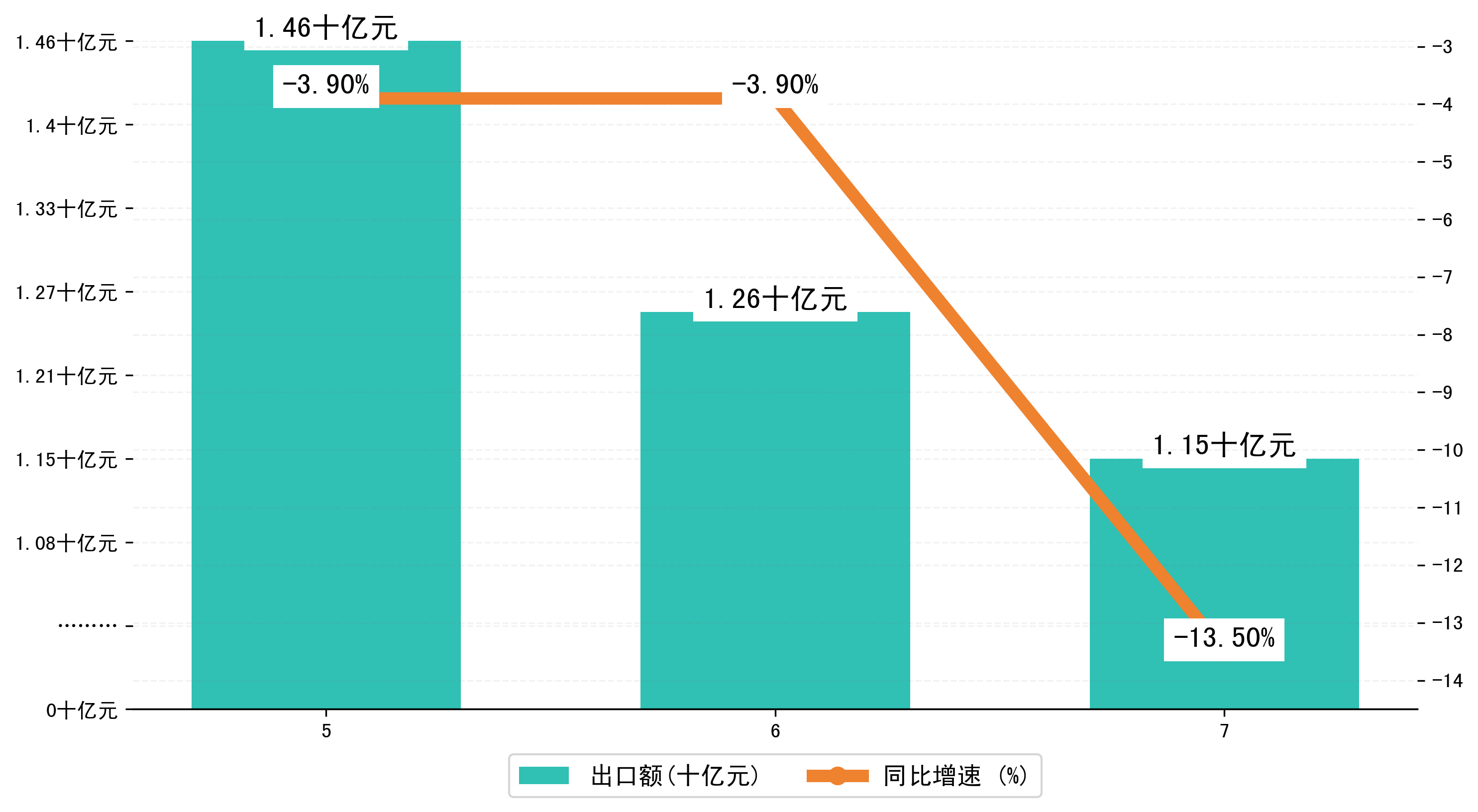 以人民币计,2024年7月黄石市出口额为11,4639.7872万元,相比上月减少了1,0947.6749万元;相比上年同期减少了8,3026.23万元,同比减少了-13.50%。