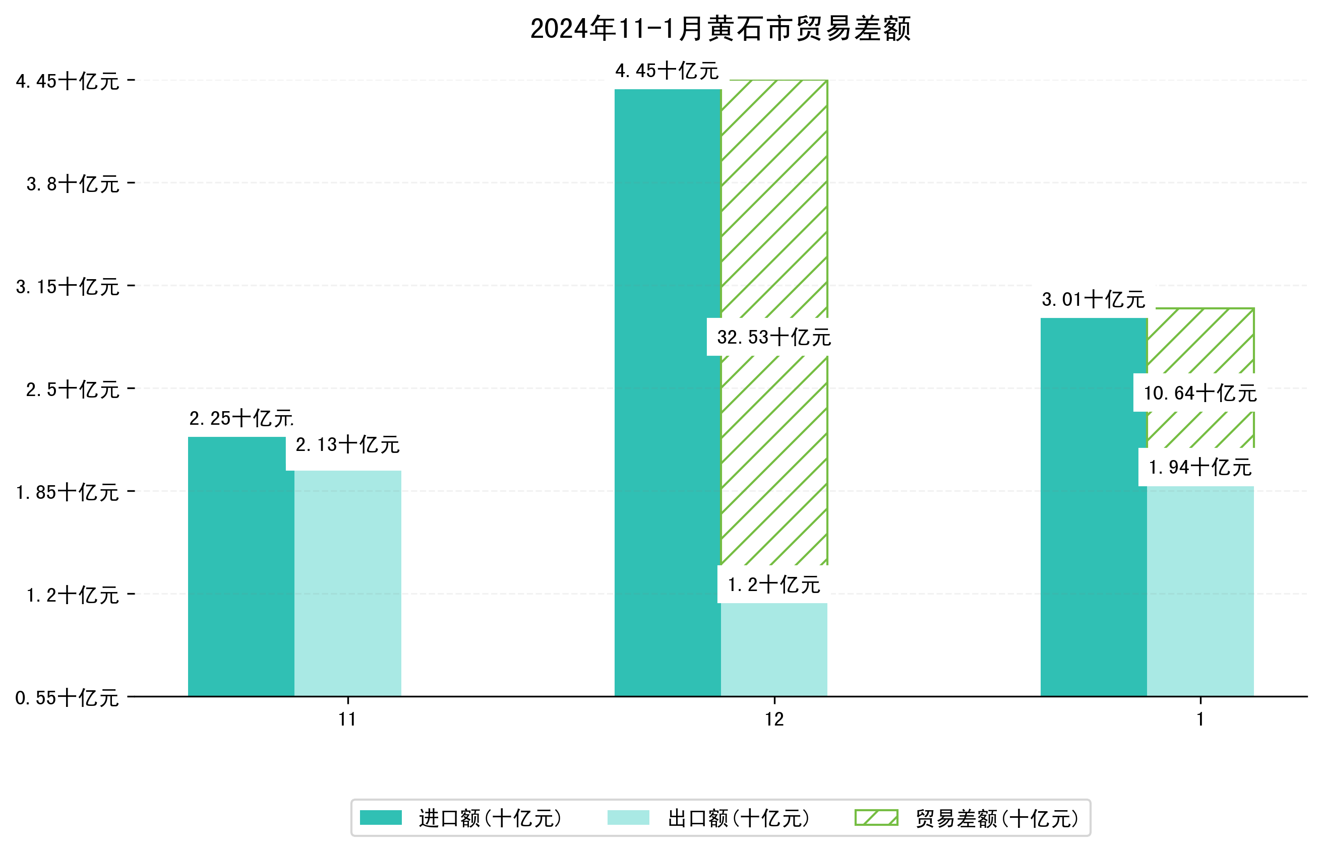 2024年1月黄石市进出口总额及进出口差额统计分析