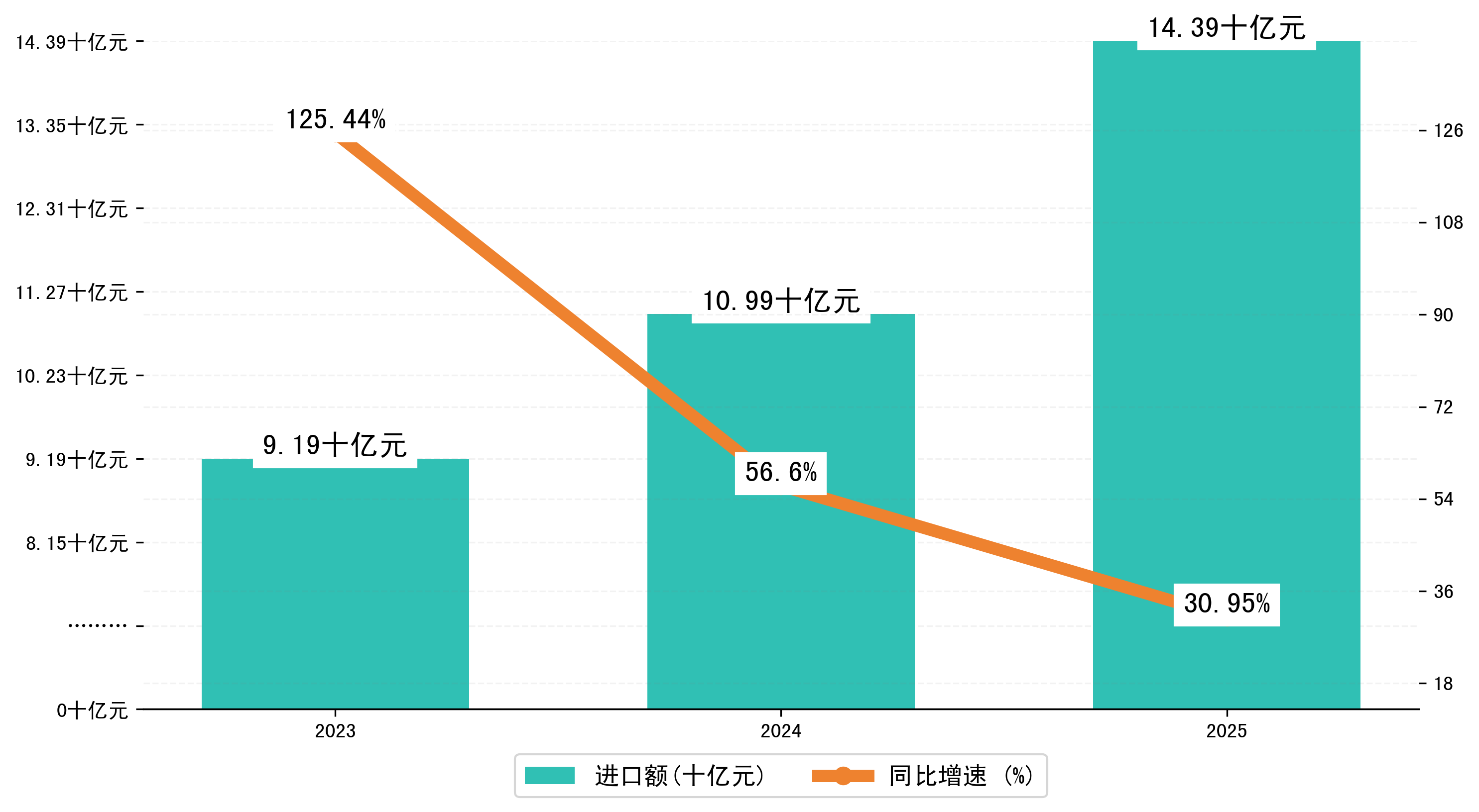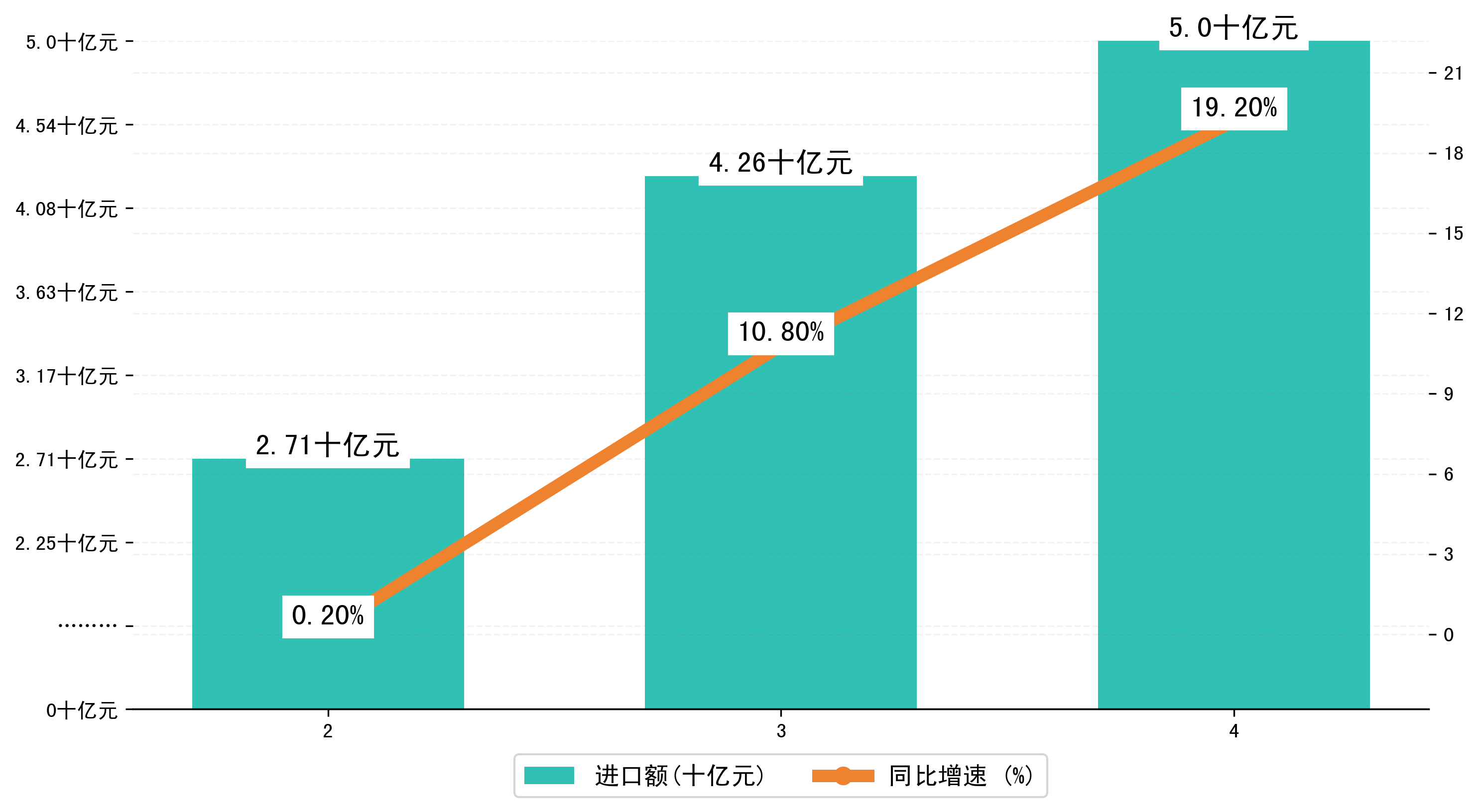 以人民币计,2025年1-4月黄石市进口额为143,9141.4086万元,相比上年同期增加了34,0155.4849万元,同比增加了19.20%。