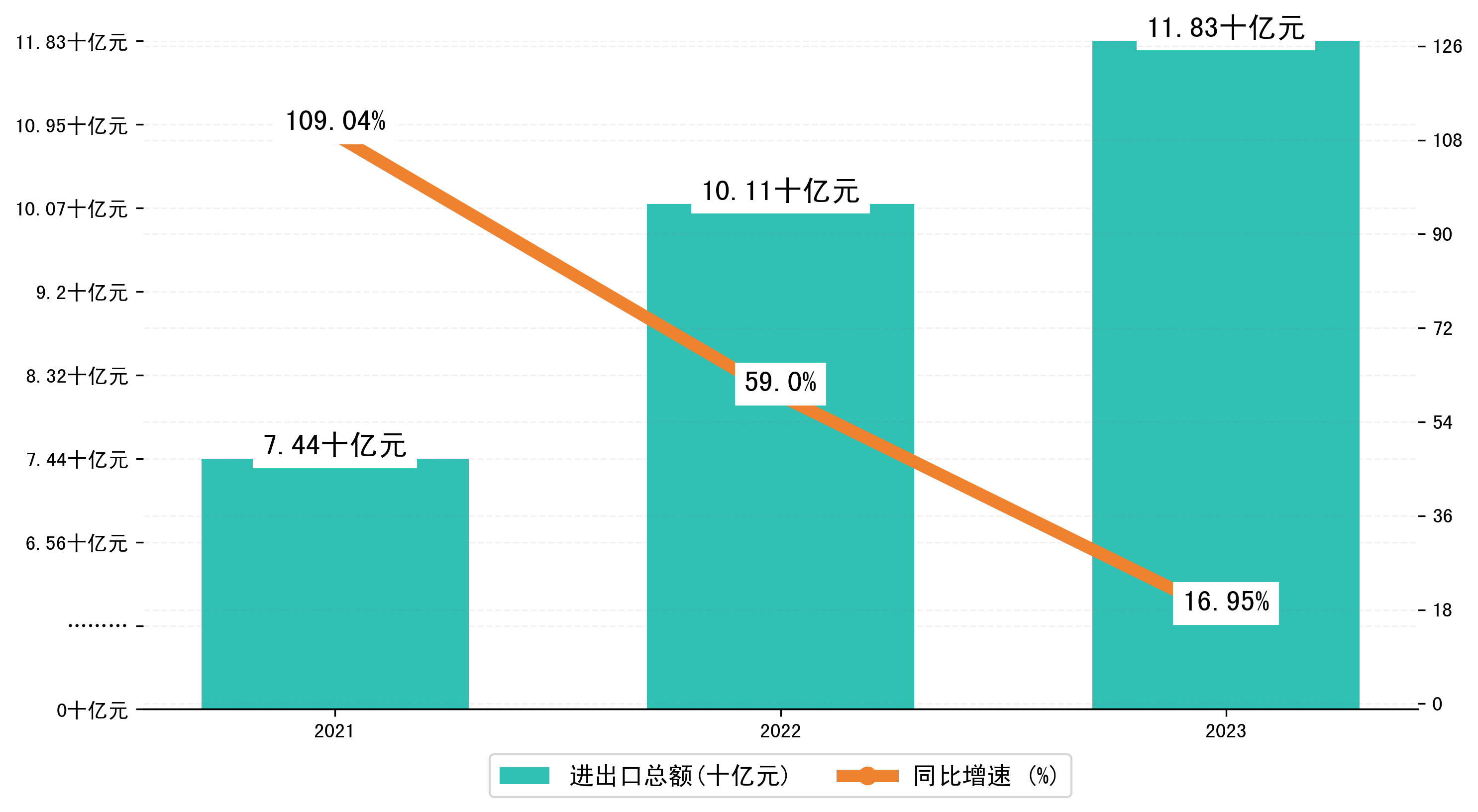 以人民币计,2023年1-3月黄石市进出口总额为118,2843.301万元,相比上年同期增加了17,1443.1007万元,同比增加了15.80%。