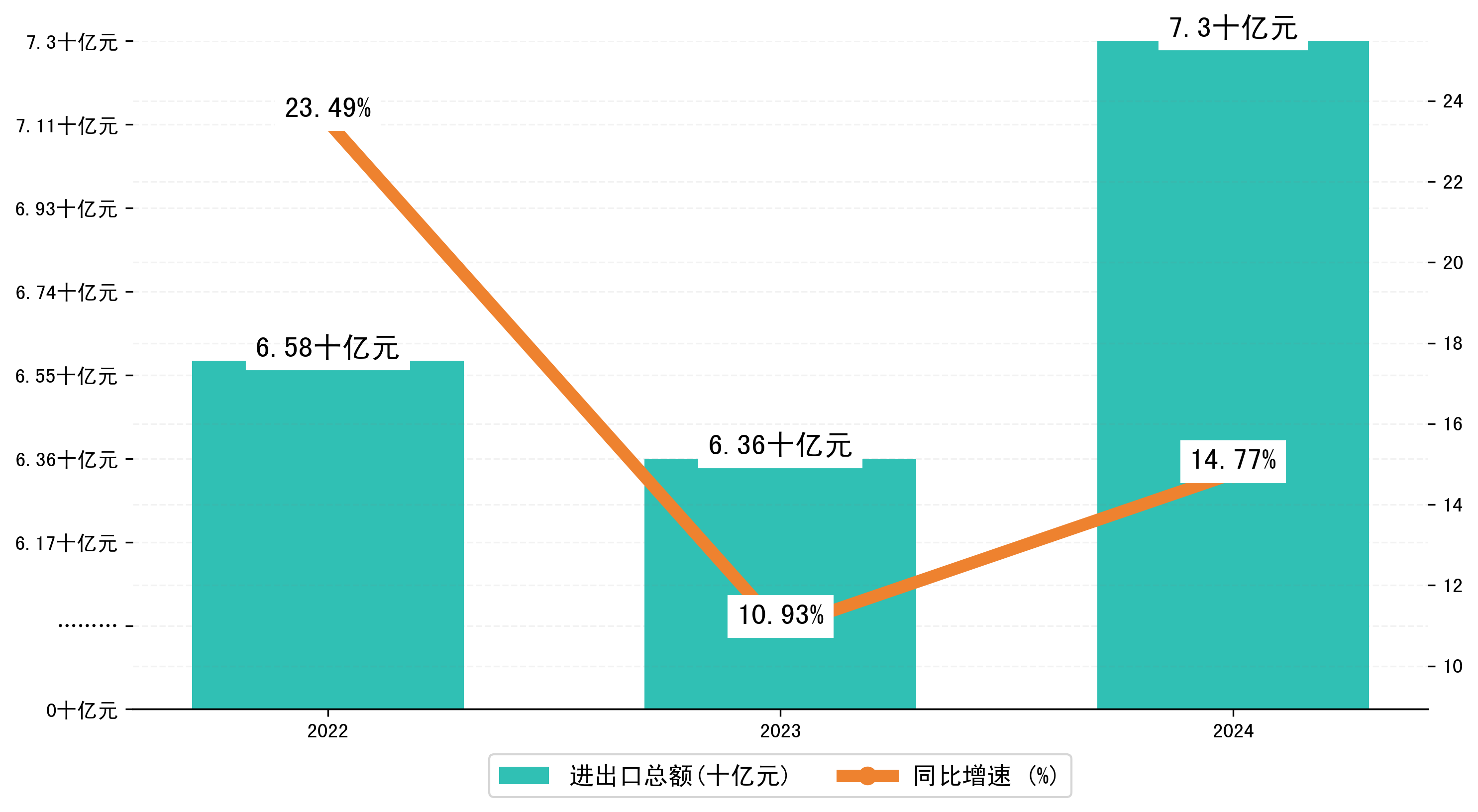 以人民币计,2024年1-4月呼和浩特市进出口总额为73,0120.996万元,相比上年同期增加了9,3950.817万元,同比增加了17.00%。