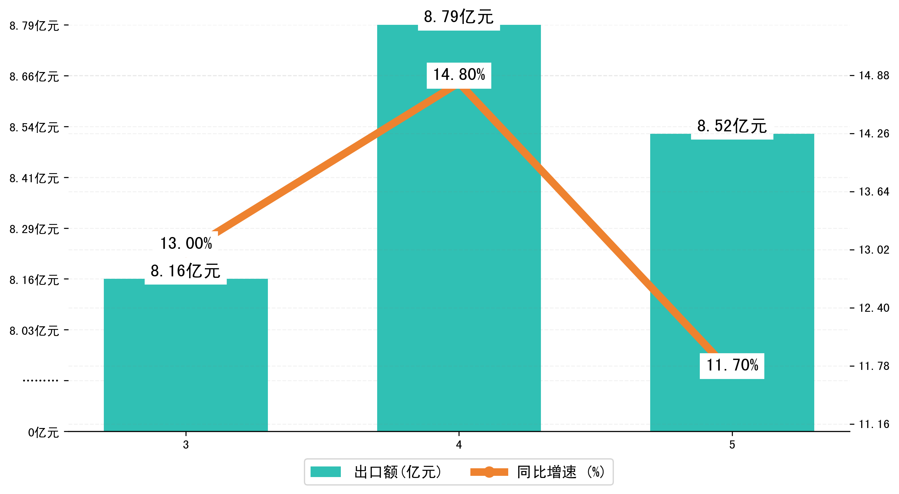 (图二:2023年3-5月呼和浩特市出口额)