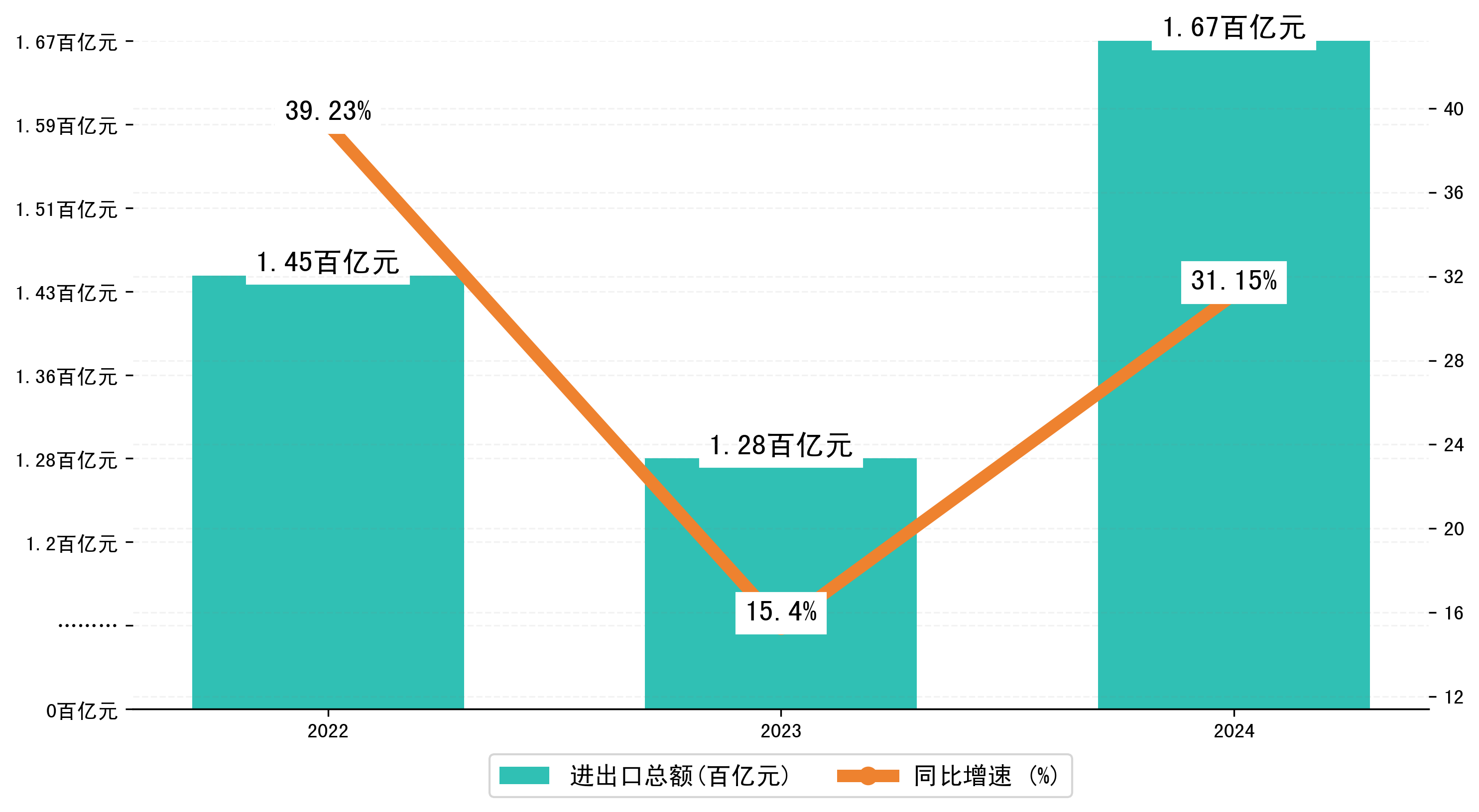 以人民币计,2024年1-9月呼和浩特市进出口总额为167,3089.8762万元,相比上年同期增加了39,7413.3643万元,同比增加了31.70%。