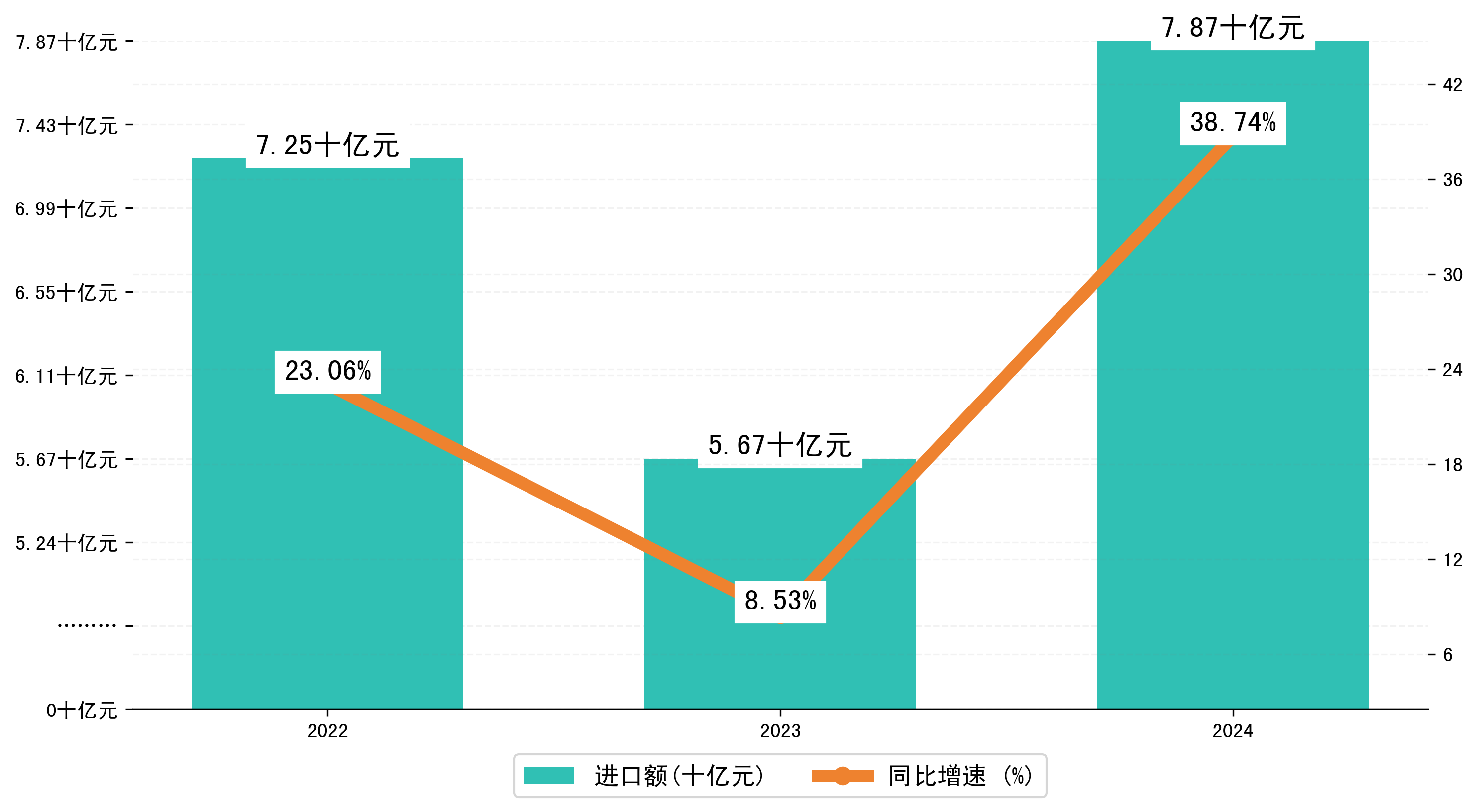 以人民币计,2024年1-9月呼和浩特市进口额为78,7329.6309万元,相比上年同期增加了21,9848.9092万元,同比增加了40.10%。