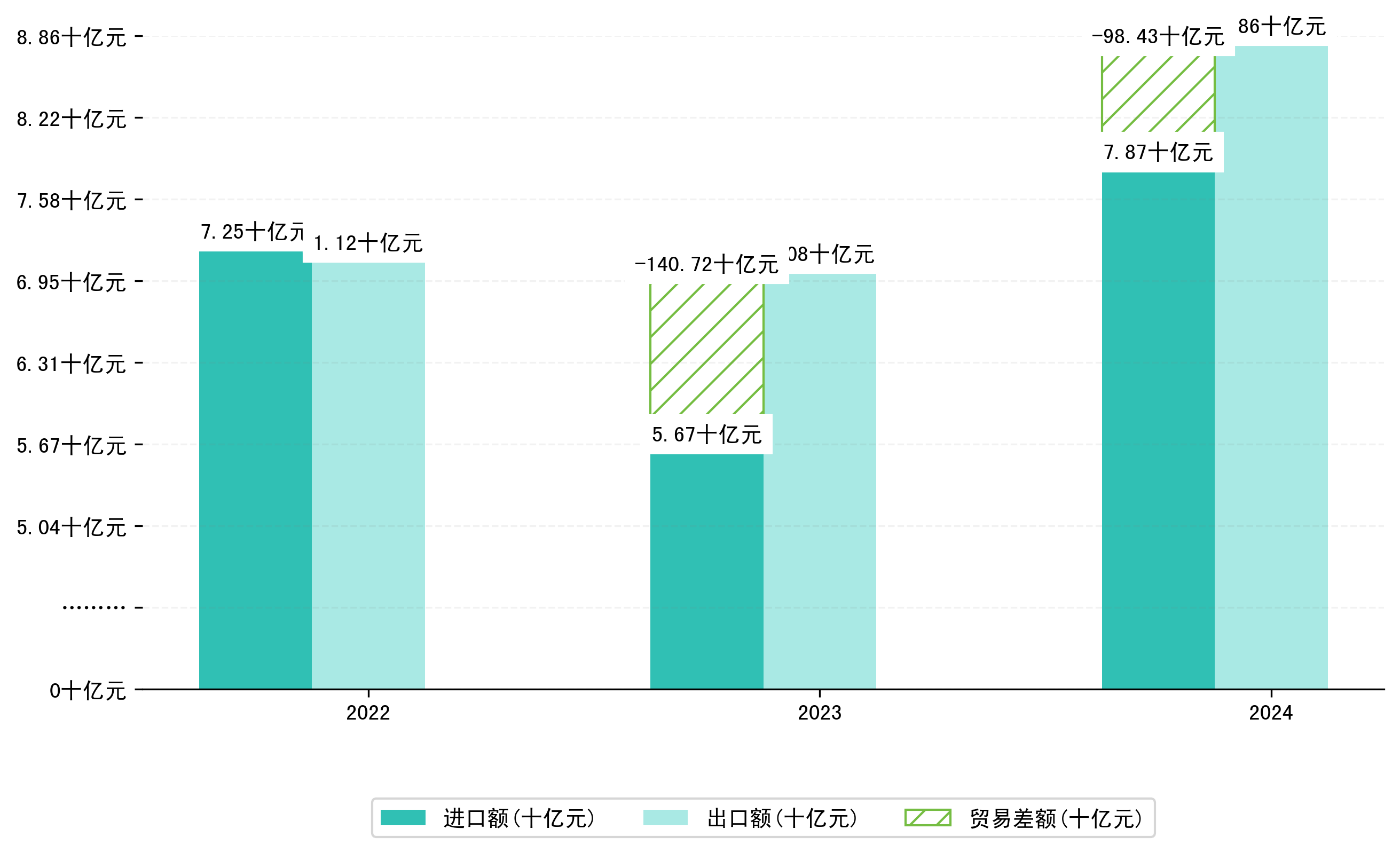 以人民币计,2024年1-9月呼和浩特市贸易差额为9,8430,6145万元(贸易顺差),相比上年同期减少了4,2284,4540万元,同比减少-30.05%。