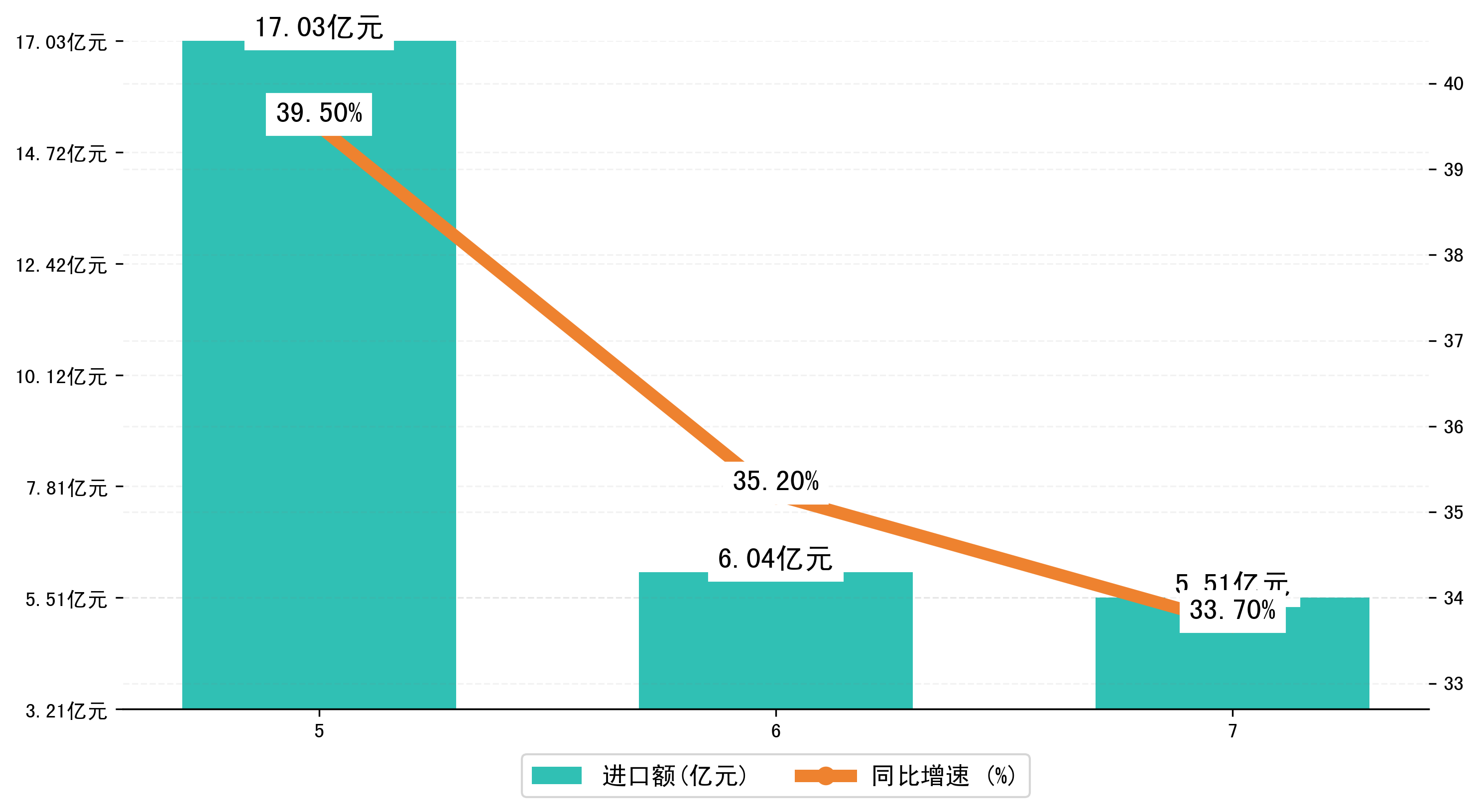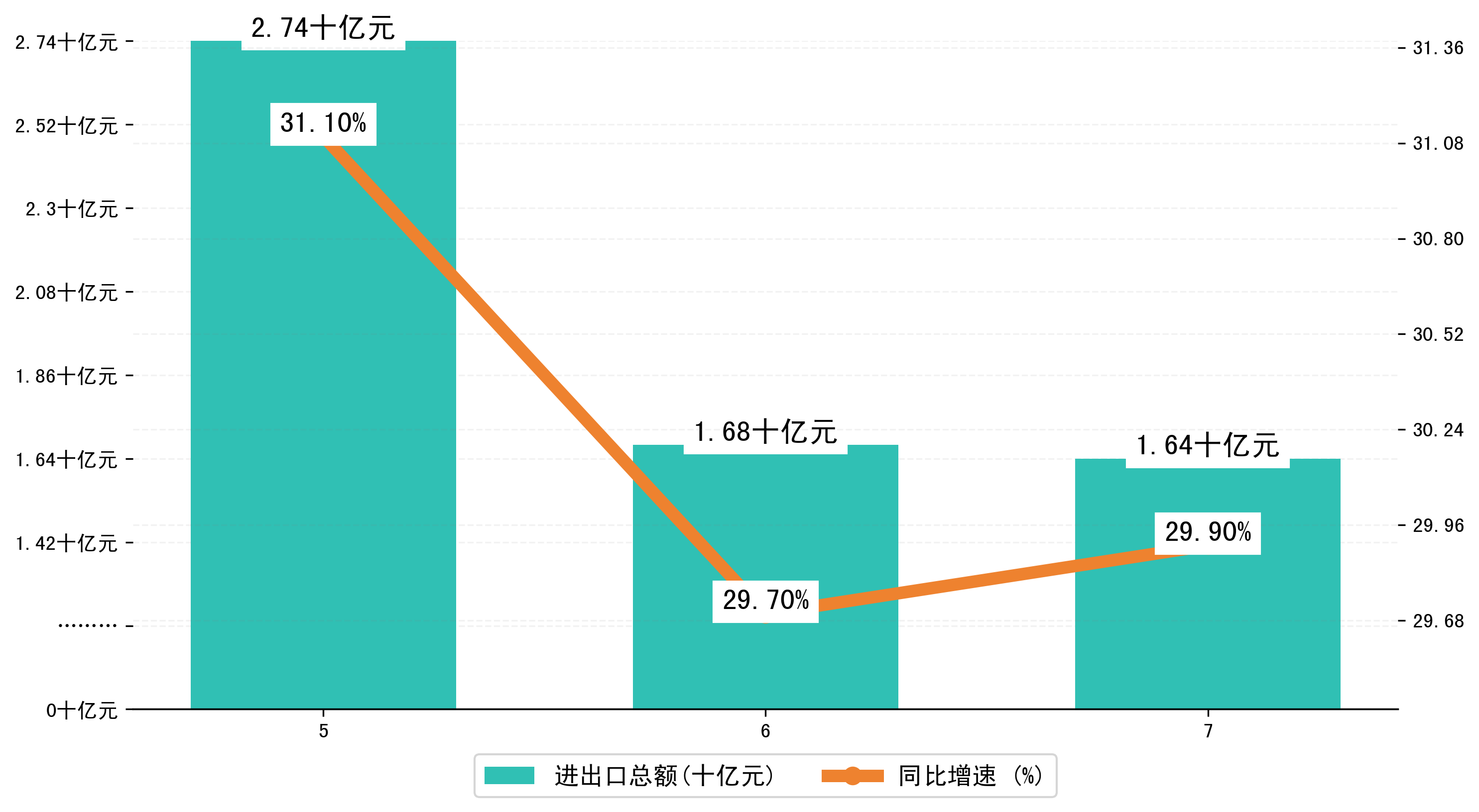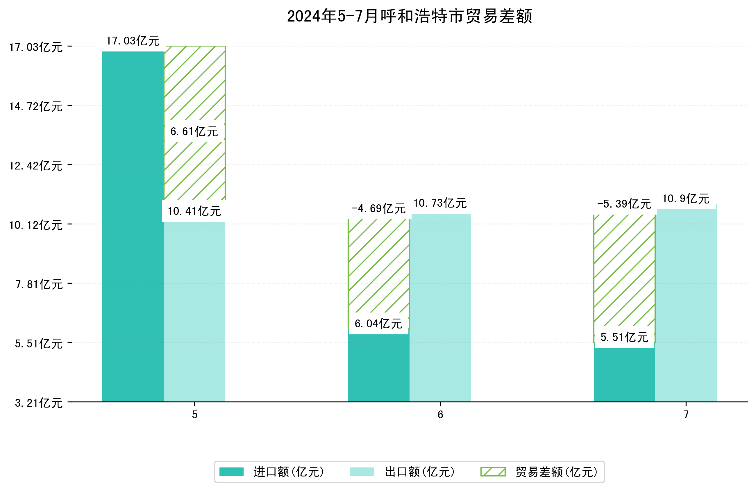 (图一:2024年5-7月呼和浩特市进出口总额)