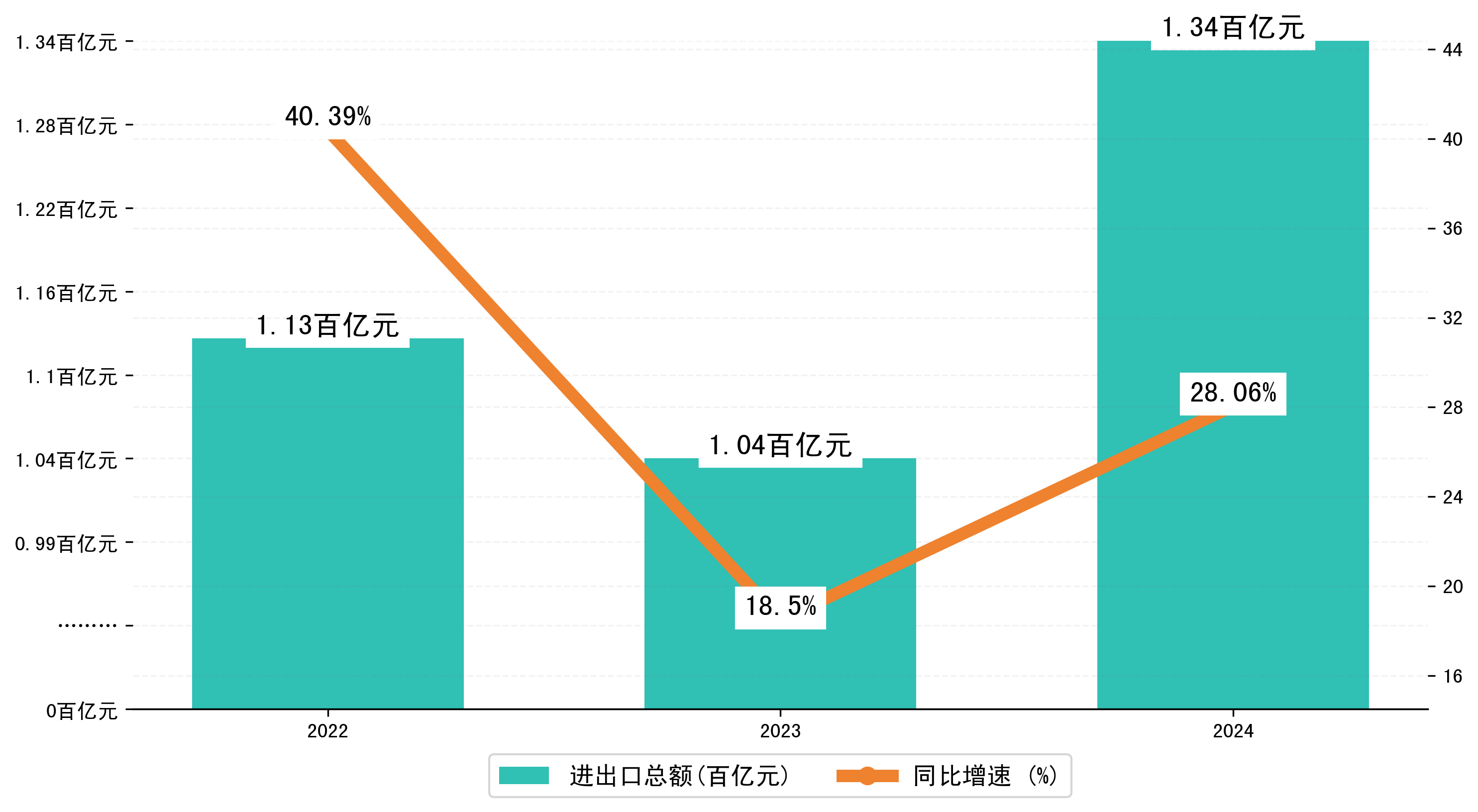 以人民币计,2024年1-7月呼和浩特市进出口总额为133,8037.3093万元,相比上年同期增加了29,3173.269万元,同比增加了29.90%。