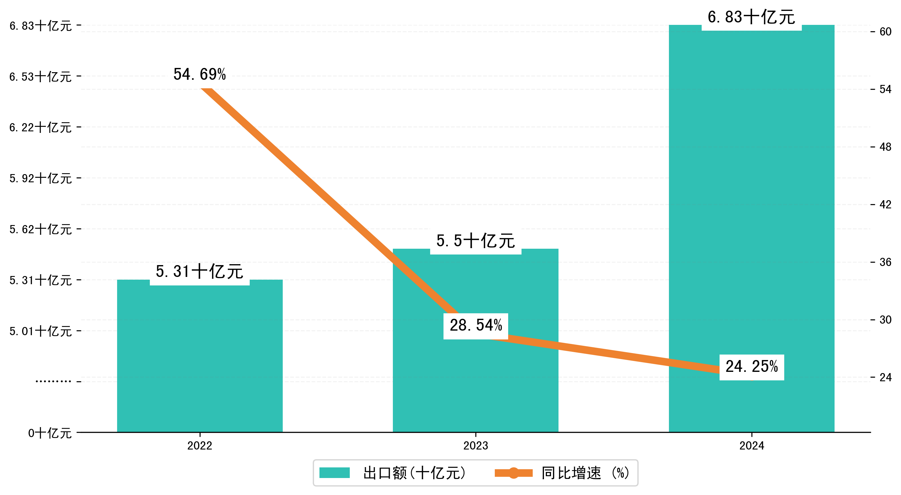 以美元计,2024年1-7月呼和浩特市出口额为9,6085.7891万美元,相比上年同期增加了1,6630.3921万美元,同比增加23.00%。