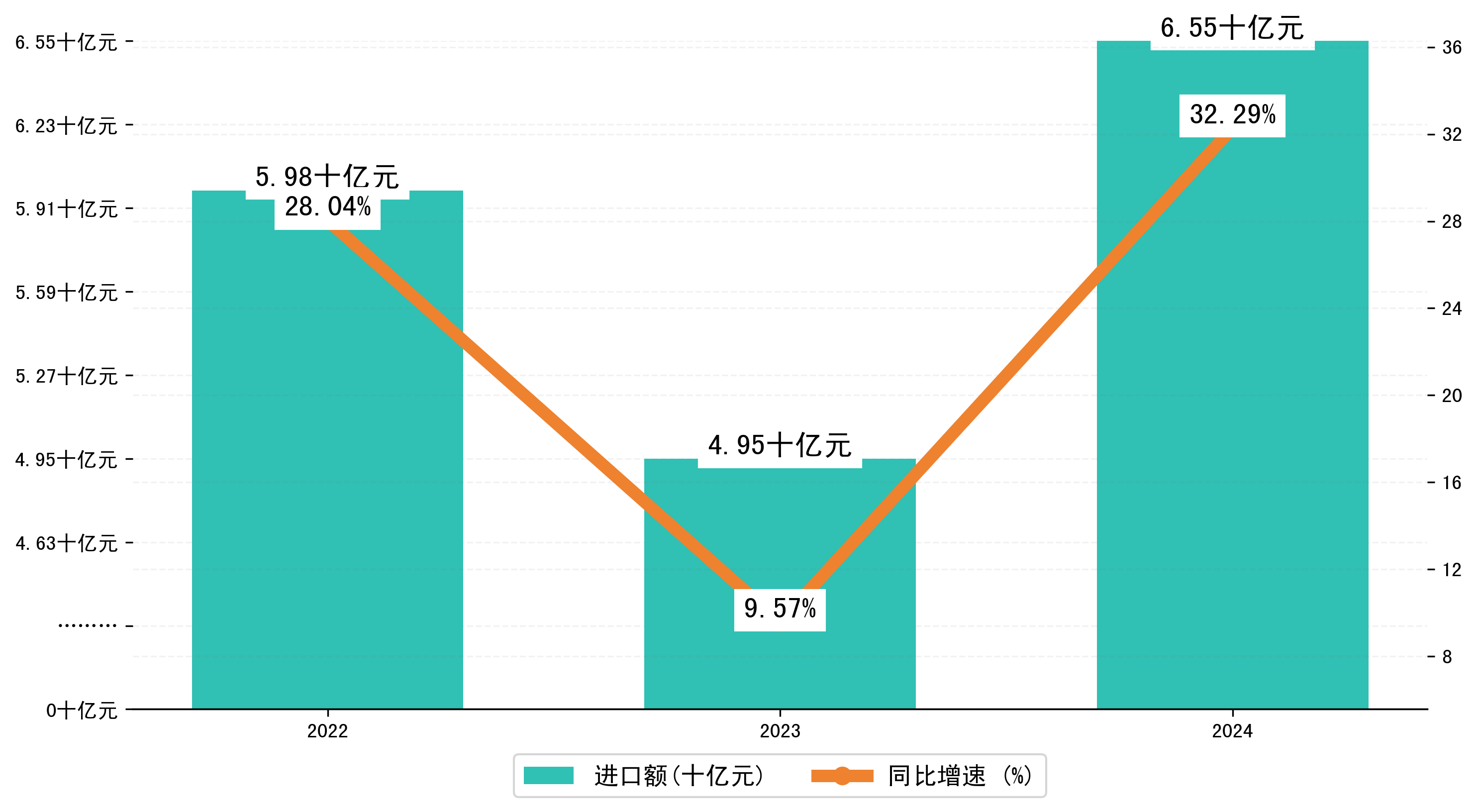 以人民币计,2024年1-7月呼和浩特市进口额为65,5145.4422万元,相比上年同期增加了15,9906.3384万元,同比增加了33.70%。